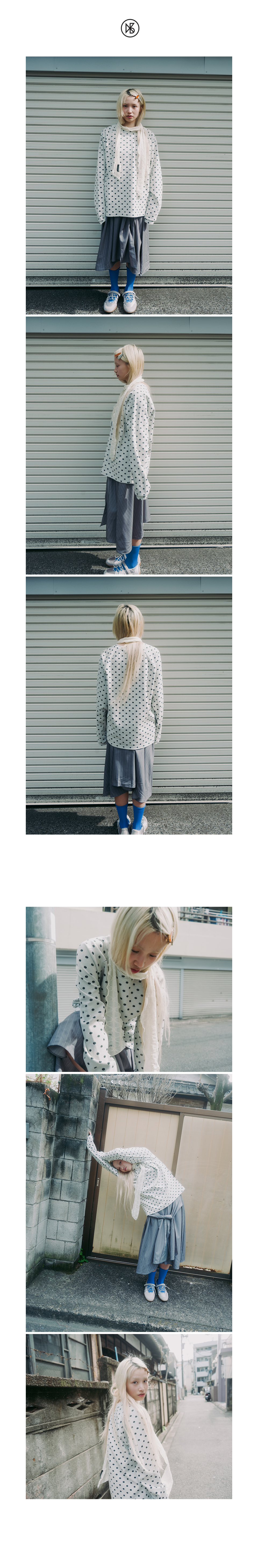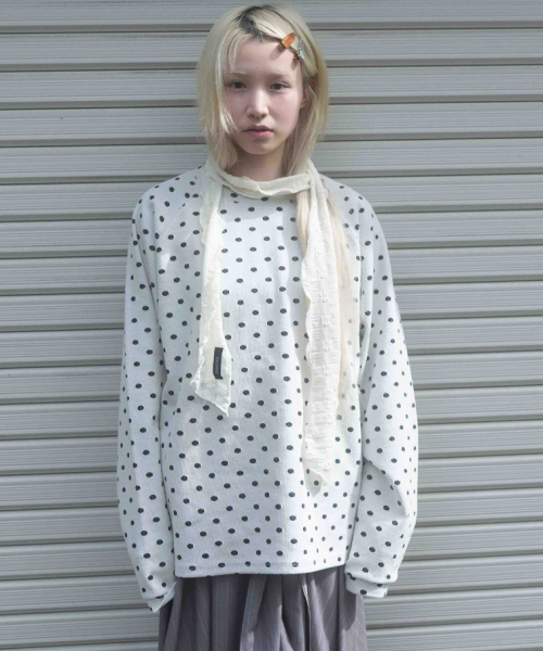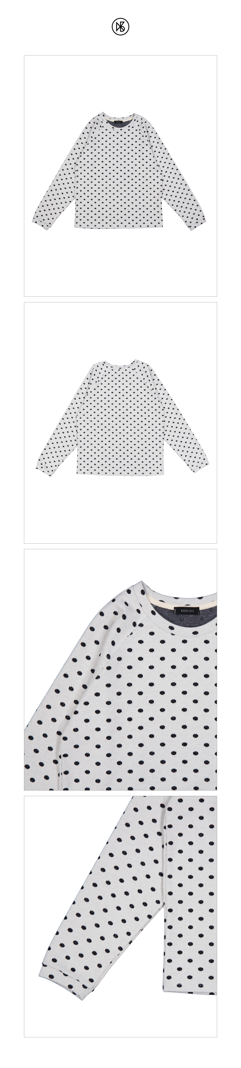 -도트 자가드 골지 조직의 래글런 티셔츠