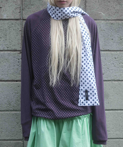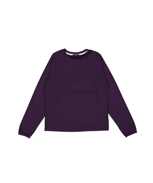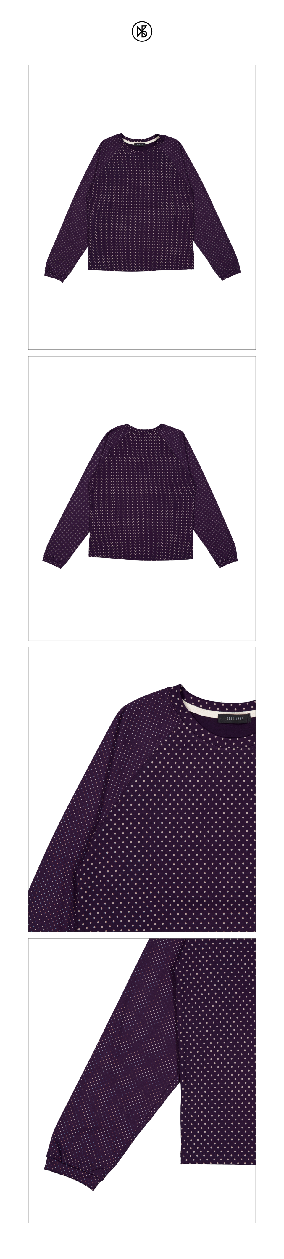 -두가지 사이즈 도트 패턴 배색 래글런 티셔츠