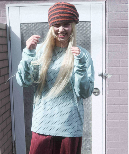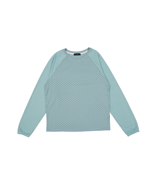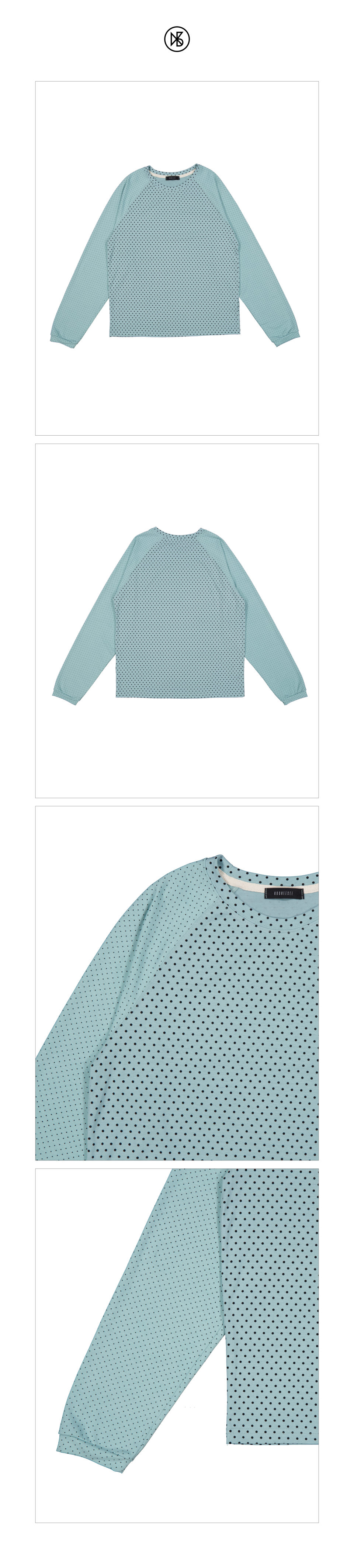 -두가지 사이즈 도트 패턴 배색 래글런 티셔츠