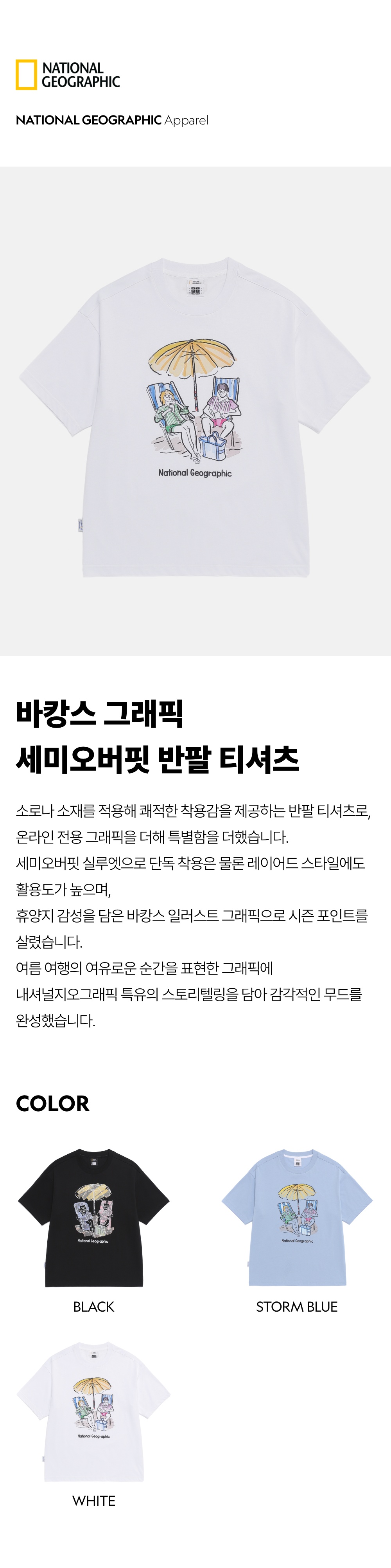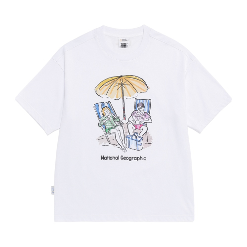 N262UTS908 바캉스 그래픽 세미오버핏 반팔 티셔츠 WHITE