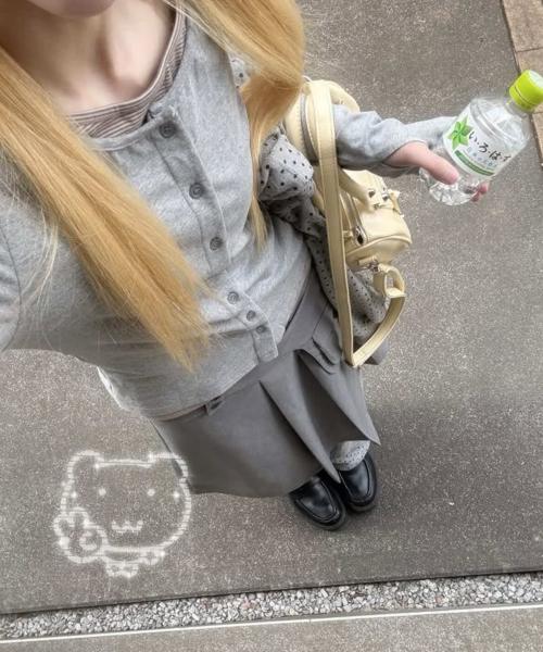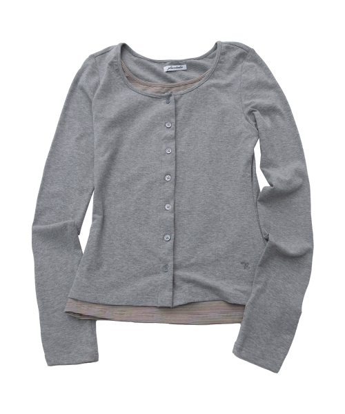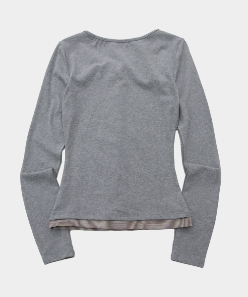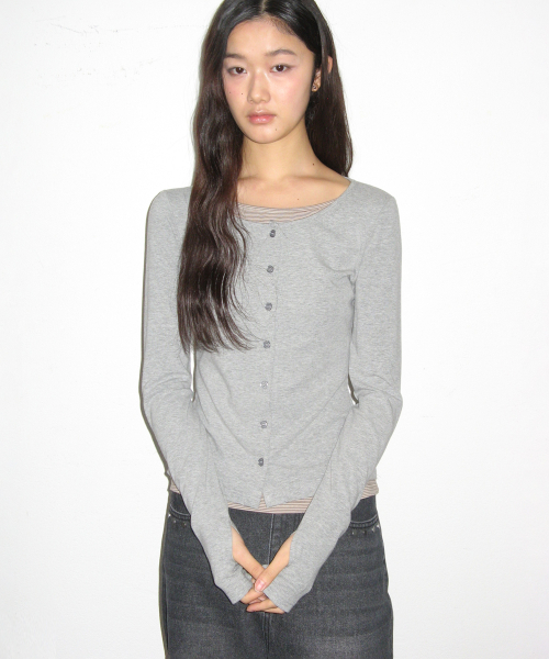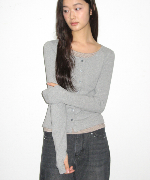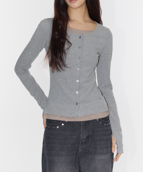 버튼업 단가라 레이어드 슬림 핏 롱슬리브 올데이 가디건 티셔츠 [그레이]