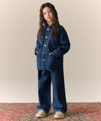 스트라이프 데님 초어 재킷 & 와이드 데님 팬츠 셋업 [미디엄 인디고]