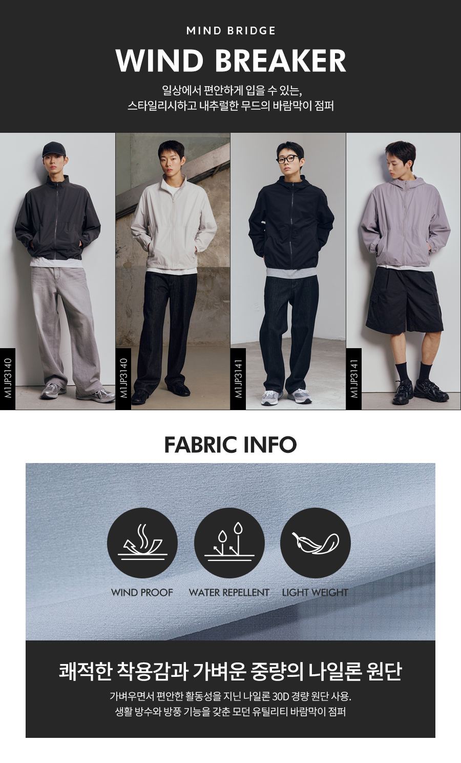 후드 경량 세미 오버핏 바람막이 - 3color
