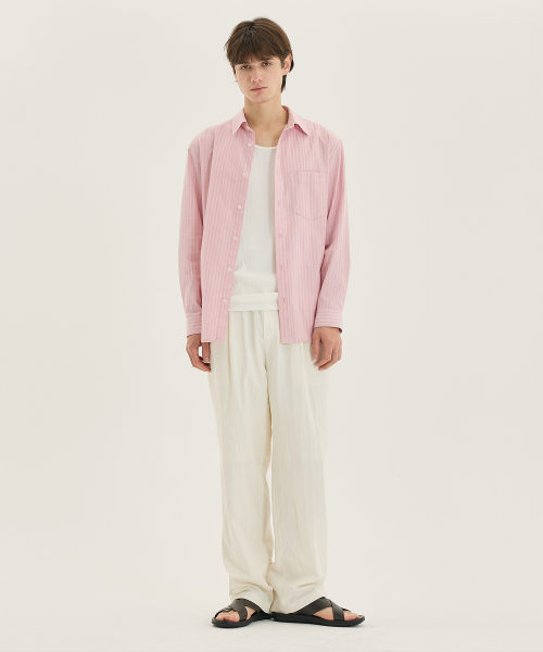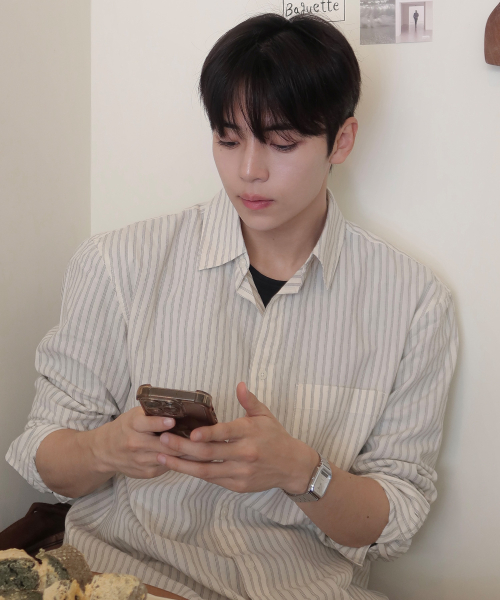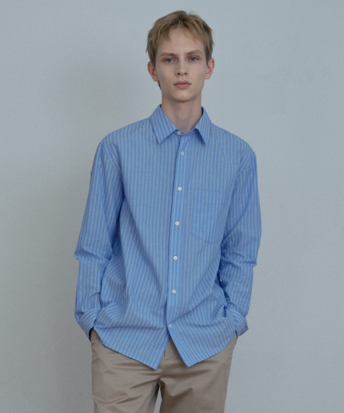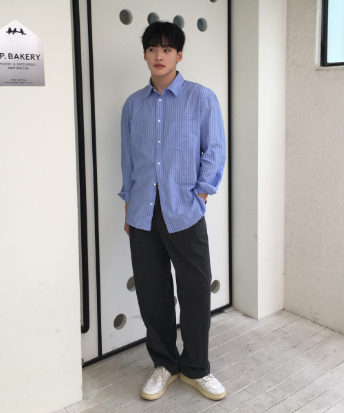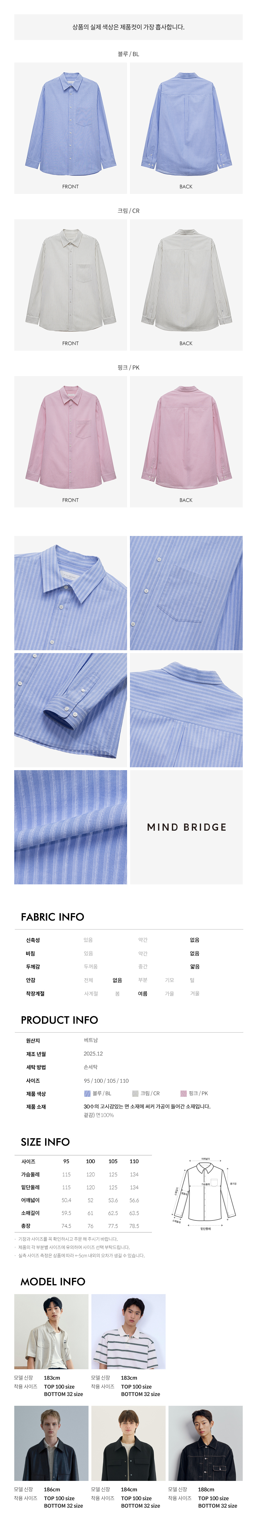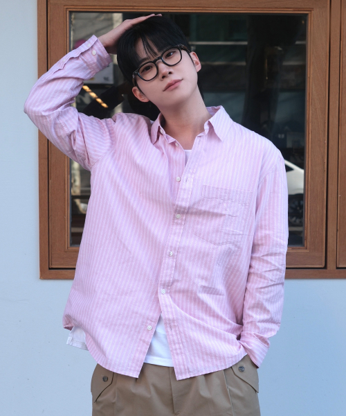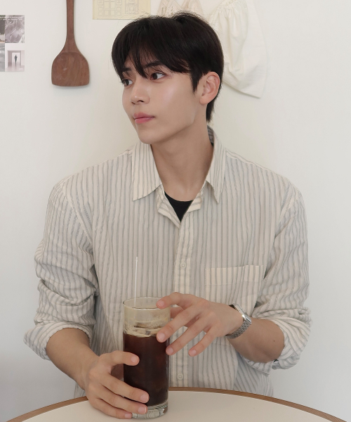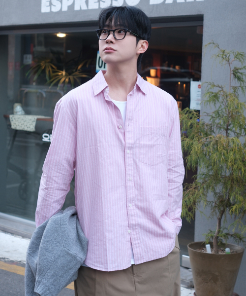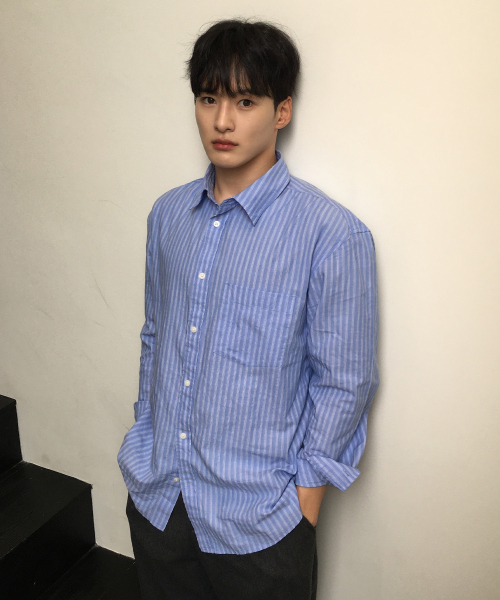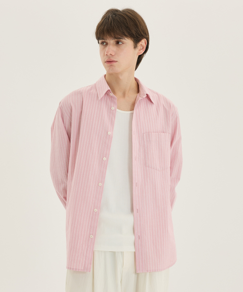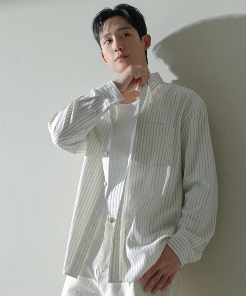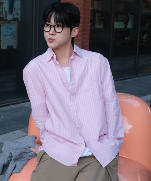 코튼100% 30수 써커라이크 스트라이프 오버핏 셔츠 - 3color