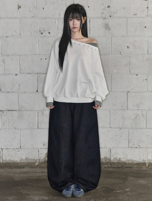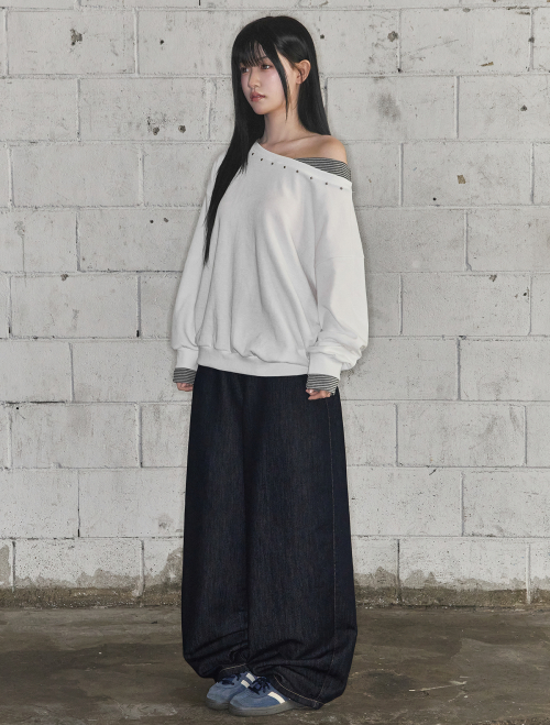 리브르 오프 숄더 언발란스 굴림 긴팔 티 (4컬러)