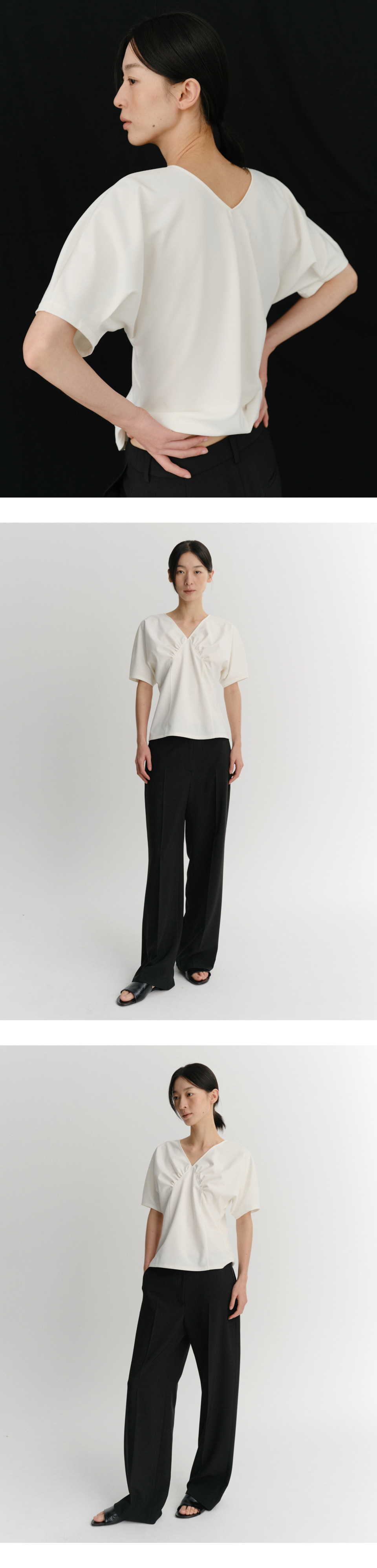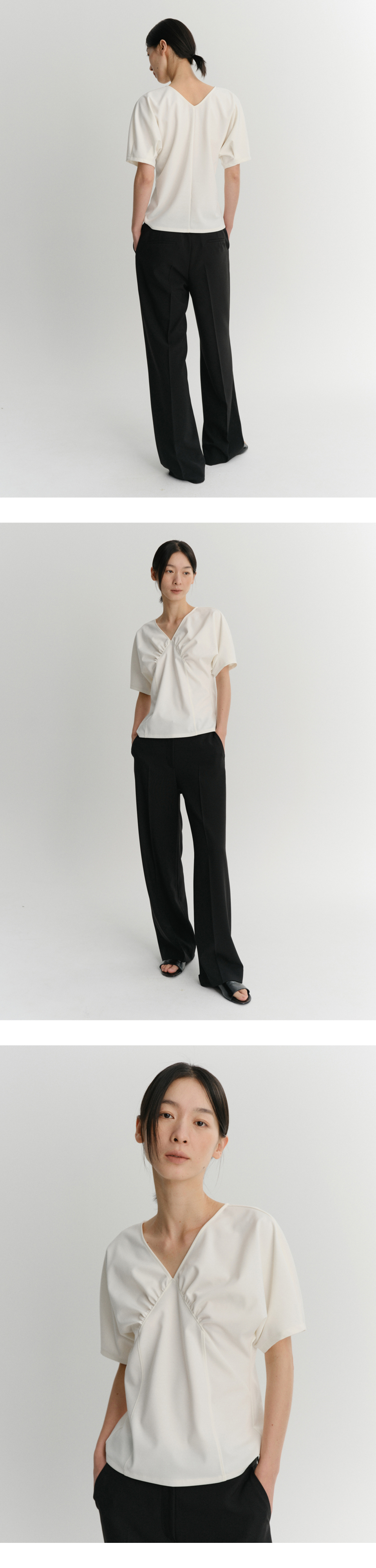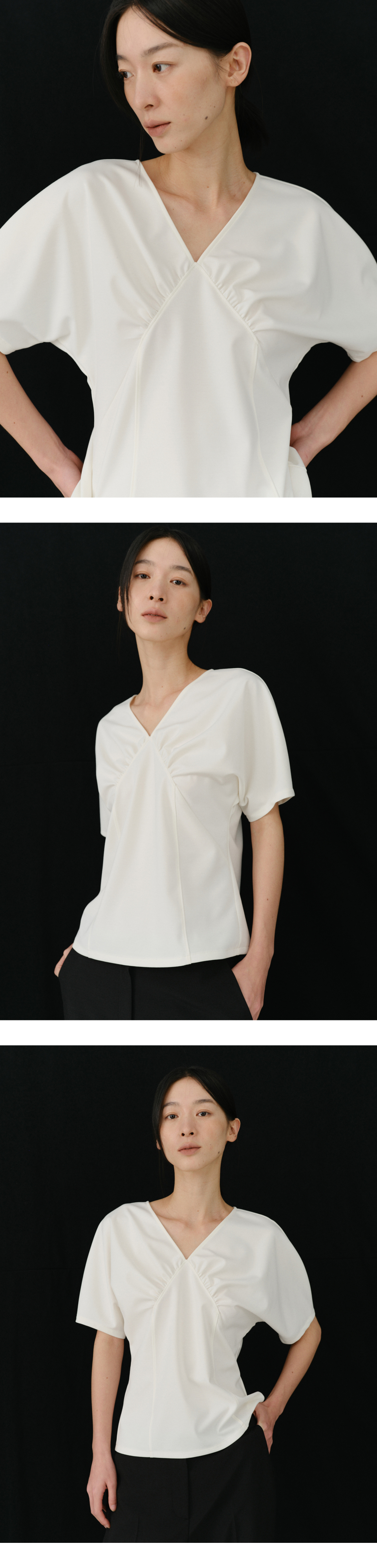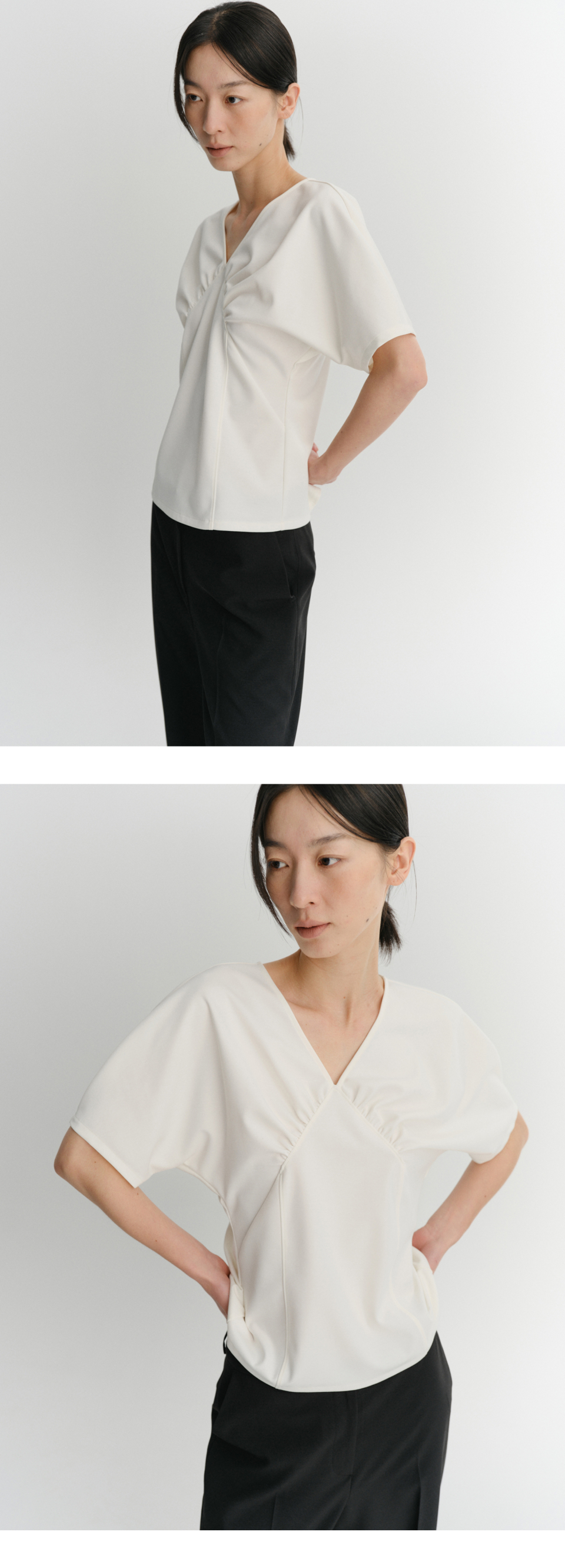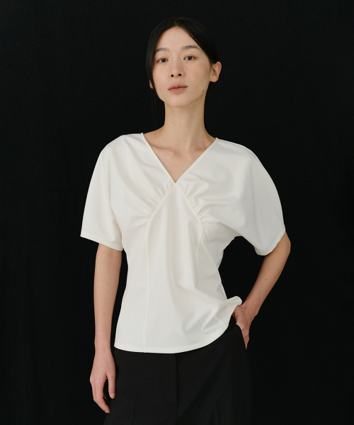 ANN LINE SHIRRING TOP (IVORY)