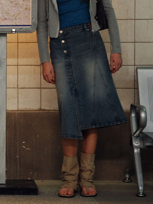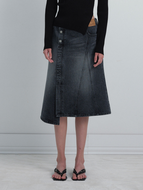 Unbalance Midi Denim Skirt VJ6SS369_2color