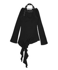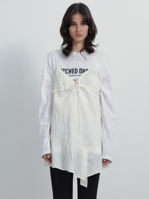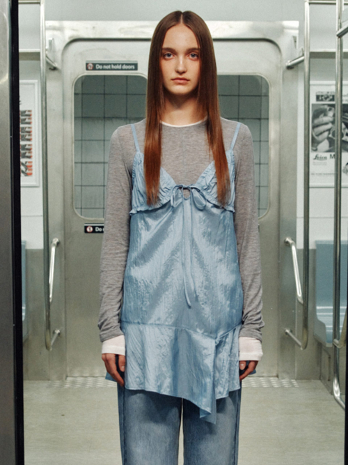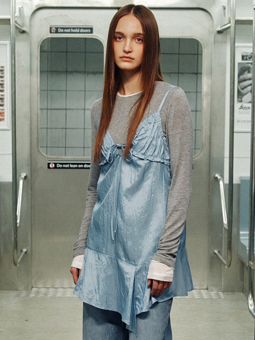 도트 롱슬리브 홀터넥 나시 레이어드 탑 세트_그레이 블랙