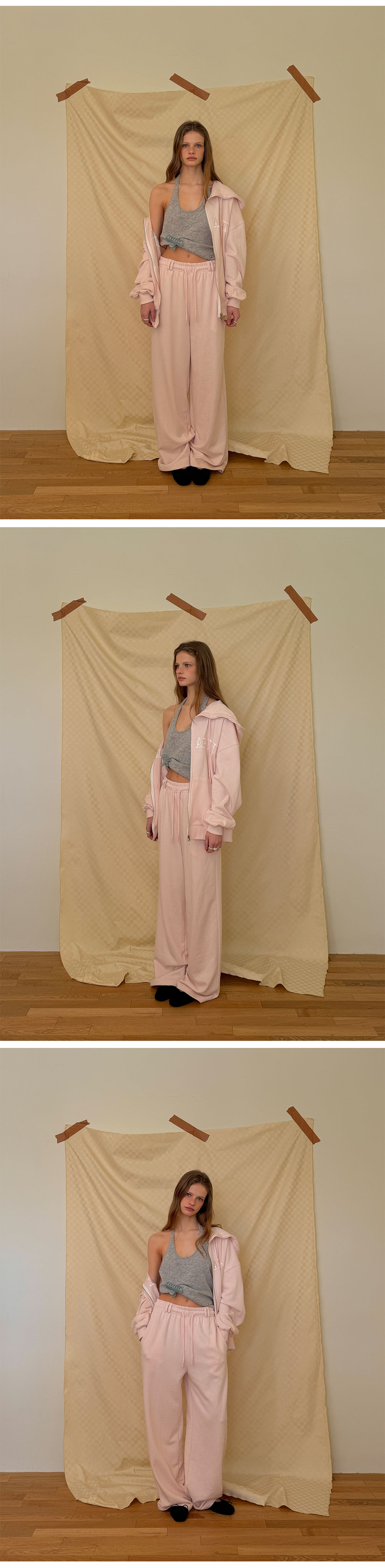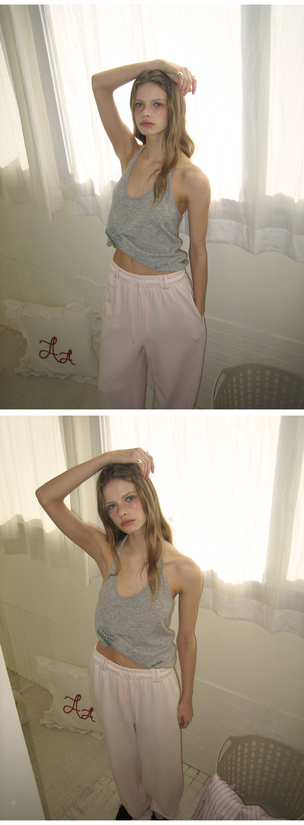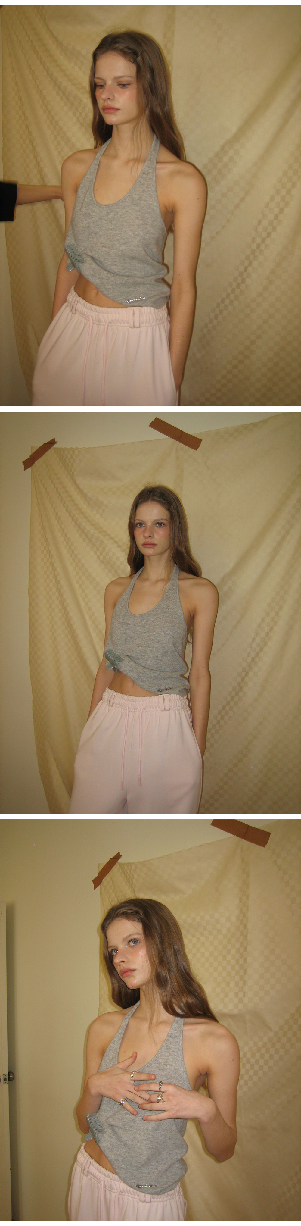 - 넥 라인을 감싸는 홀터넥 디자인으로 페미닌한 무드