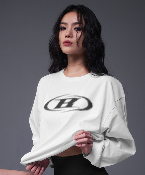 W HALFTONE LOGO OVER FIT LONG SLEEVE [WHITE]