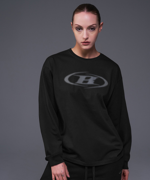 W HALFTONE LOGO OVER FIT LONG SLEEVE [BLACK]