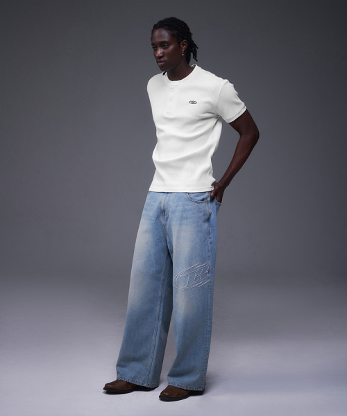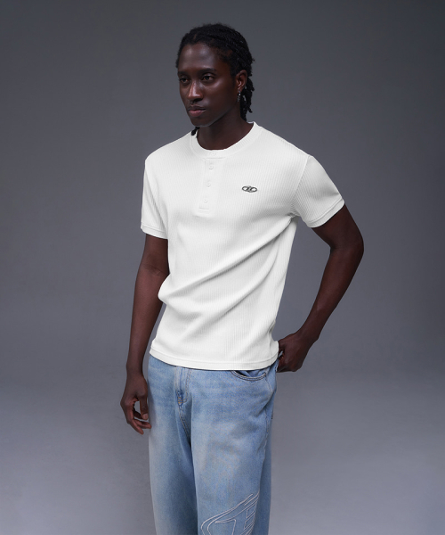 B PENDANT HENRY NECK MUSCLE FIT T-SHIRTS [WHITE]