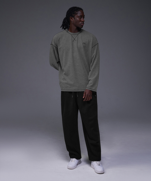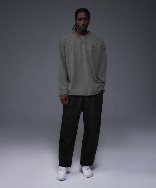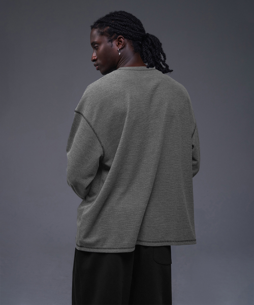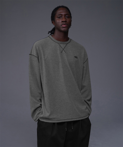 B PENDANT WAFFLE LONG SLEEVE [MELANGE CHARCOAL]