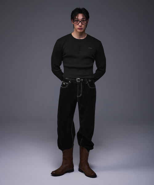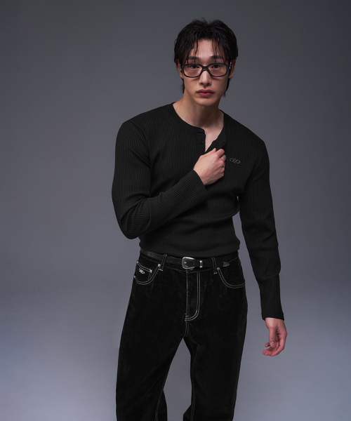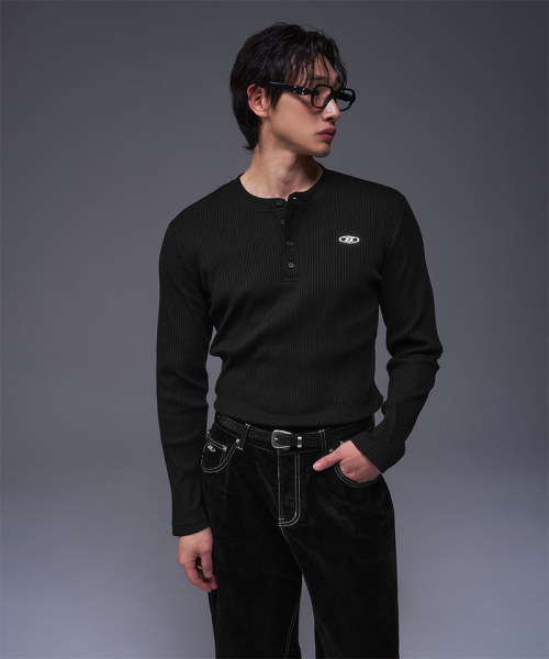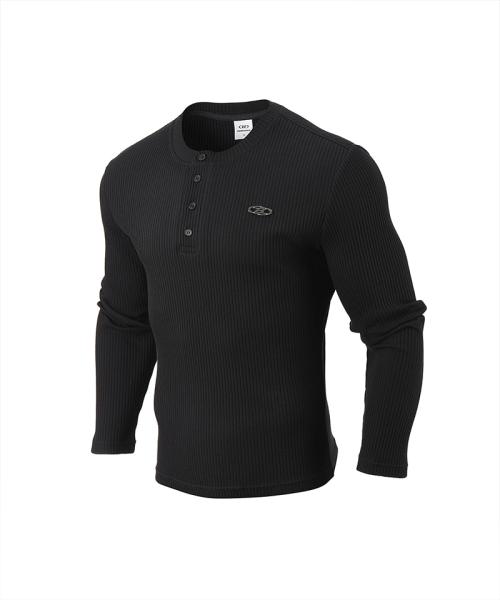 B PENDANT HENRY NECK MUSCLE FIT LONG SLEEVE [BLACK]