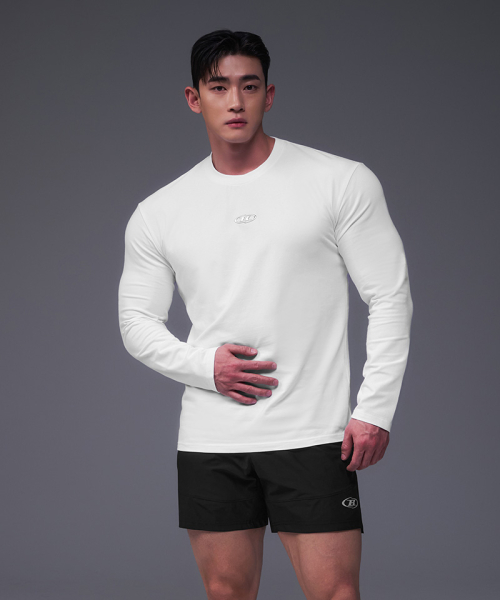 SILVER B LOGO MUSCLE FIT LONG SLEEVE [WHITE]