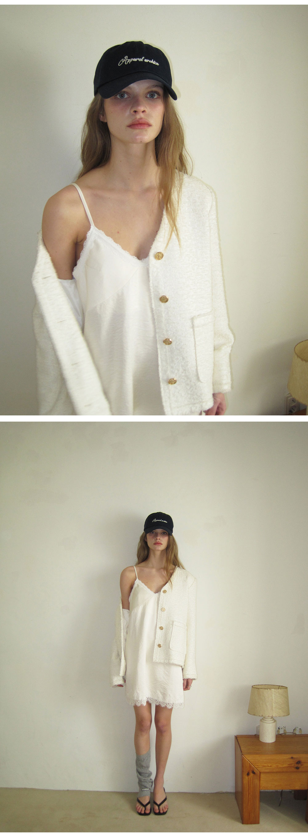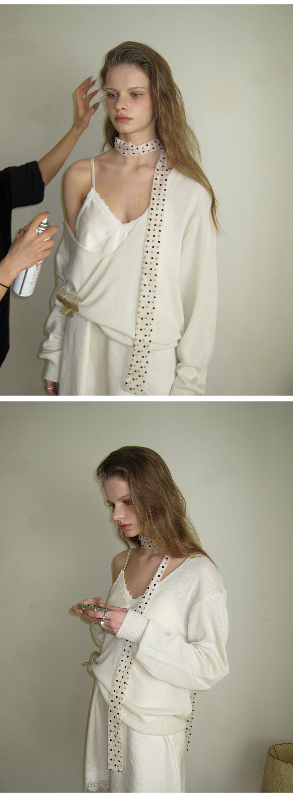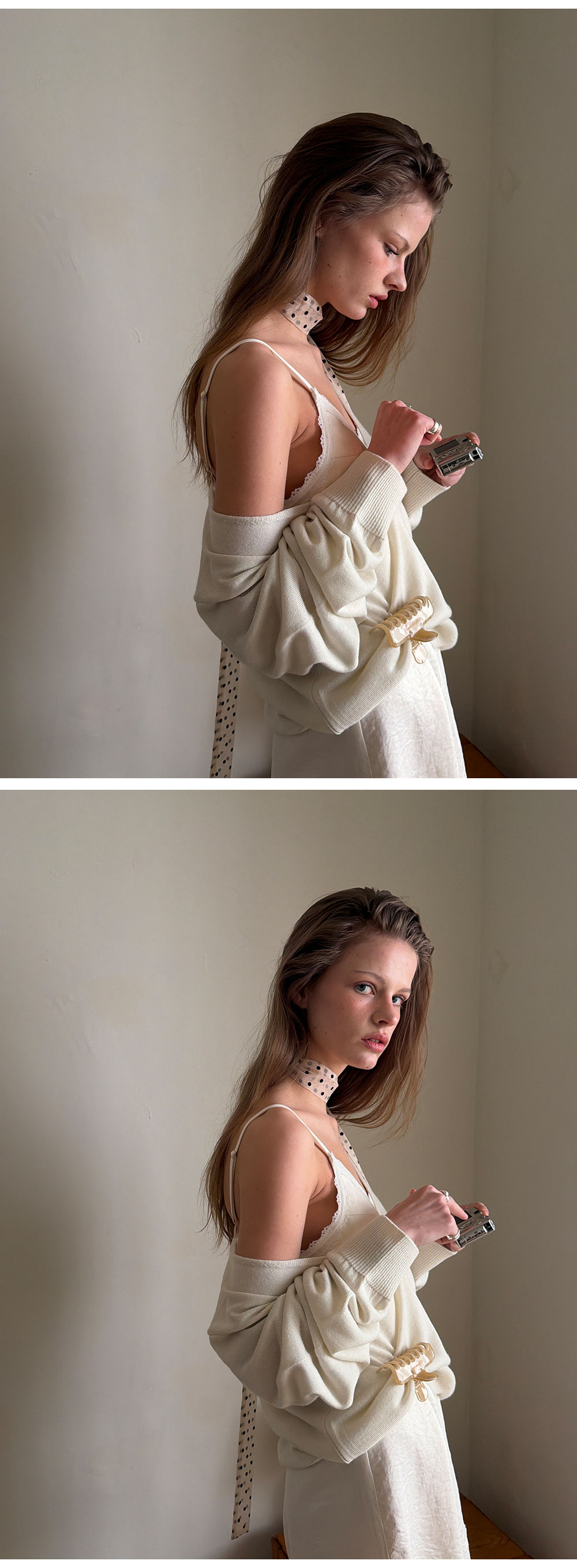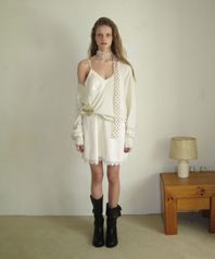 - 부드러운 크림 컬러와 은은한 광택이 감도는 새틴 패브릭으로 부드럽게 흐르는 실루엣