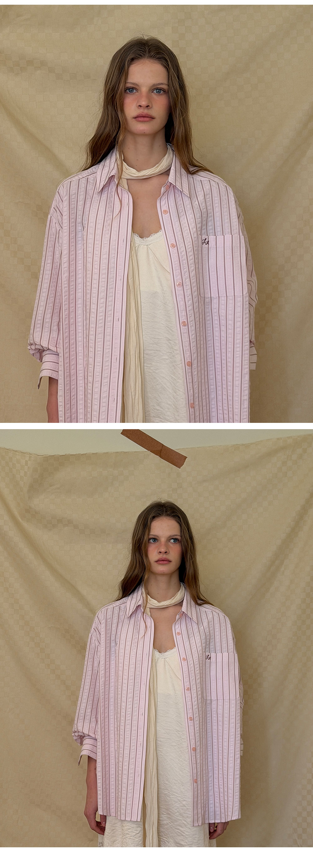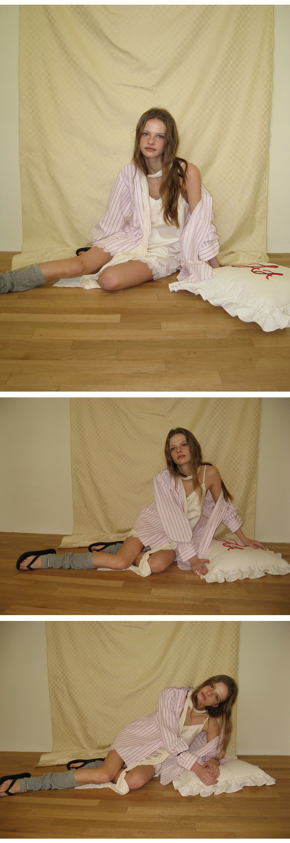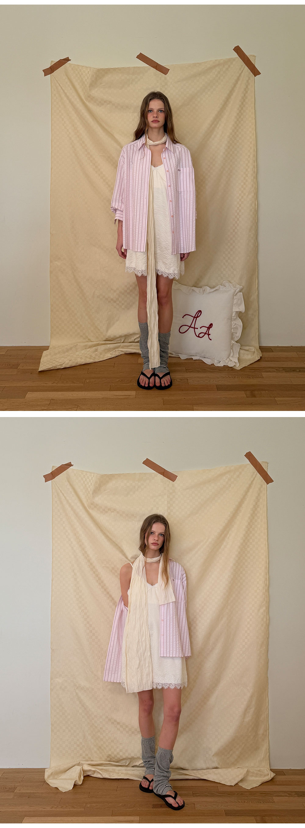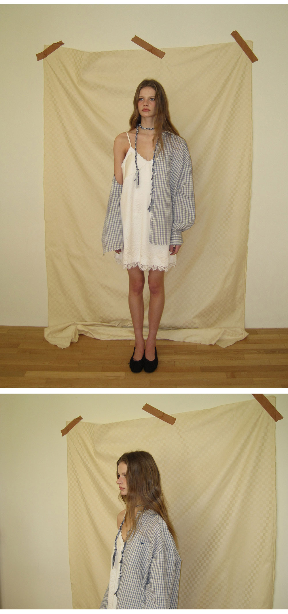 - 부드러운 크림 컬러와 은은한 광택이 감도는 새틴 패브릭으로 부드럽게 흐르는 실루엣