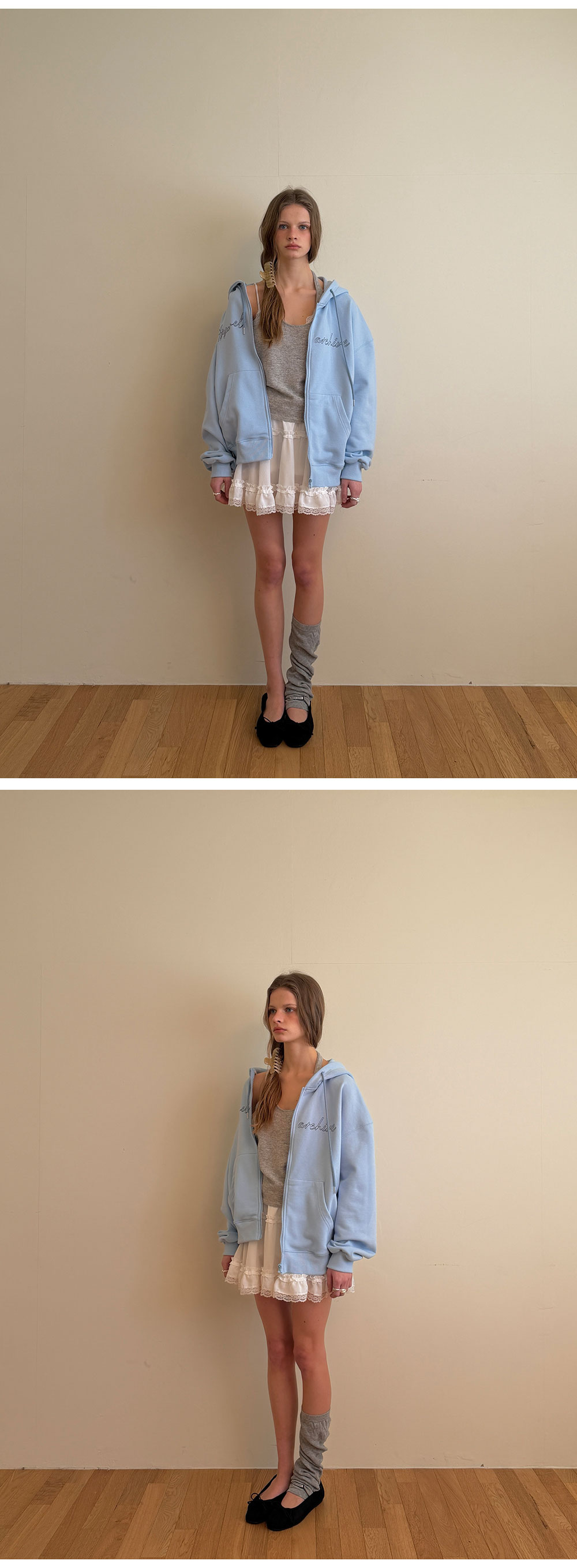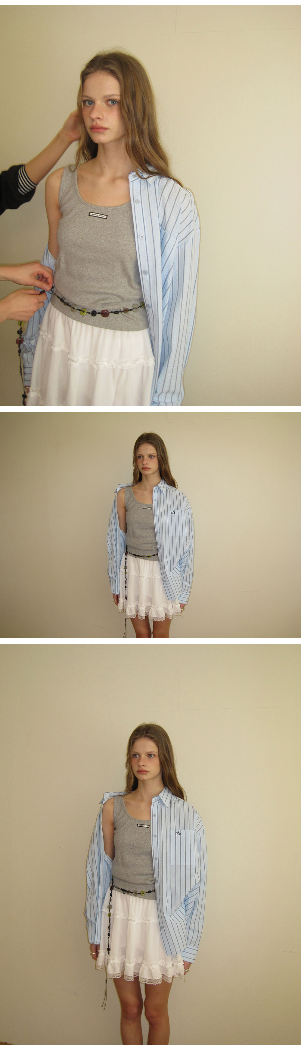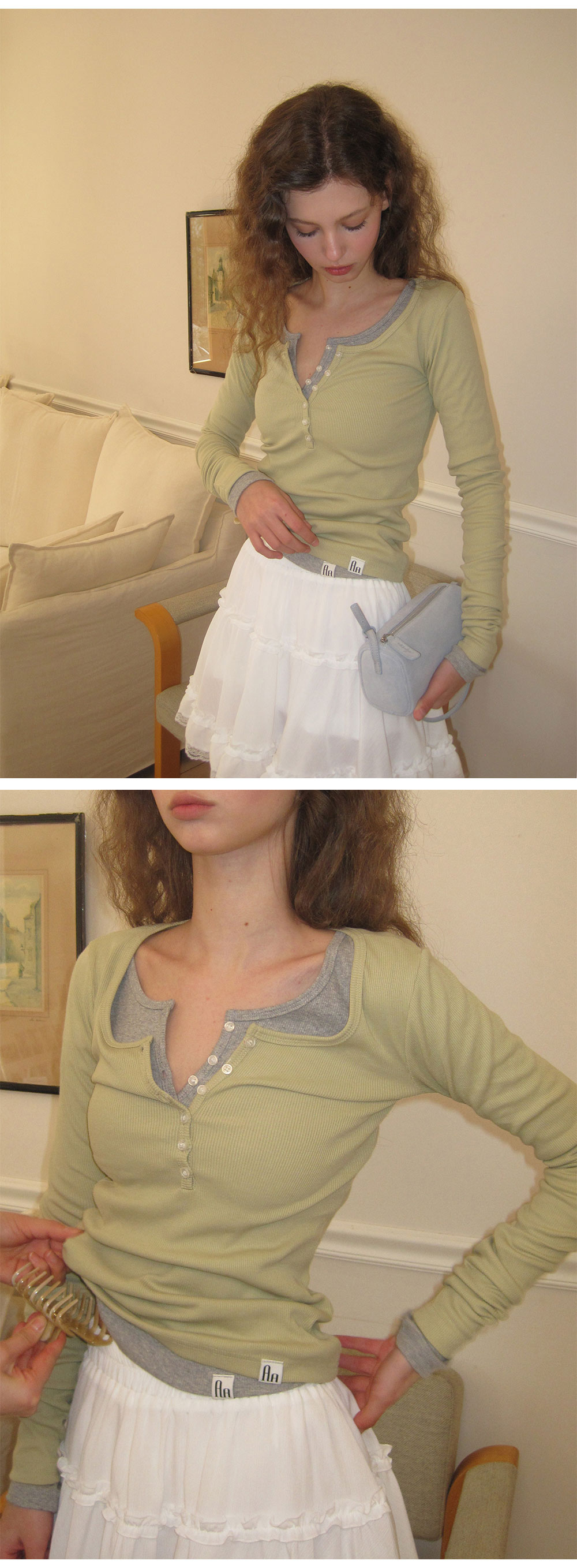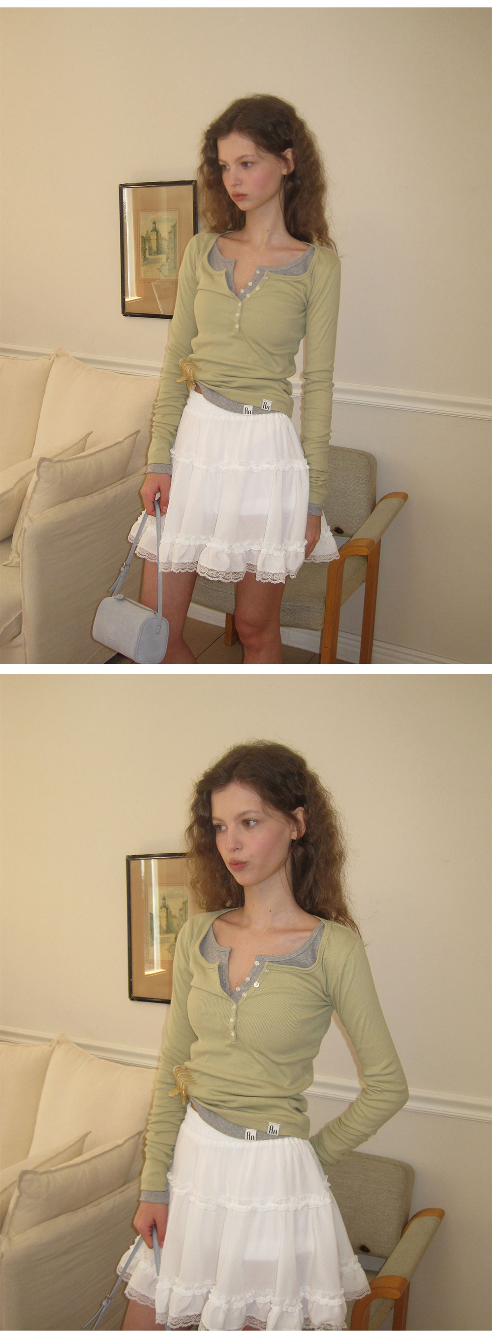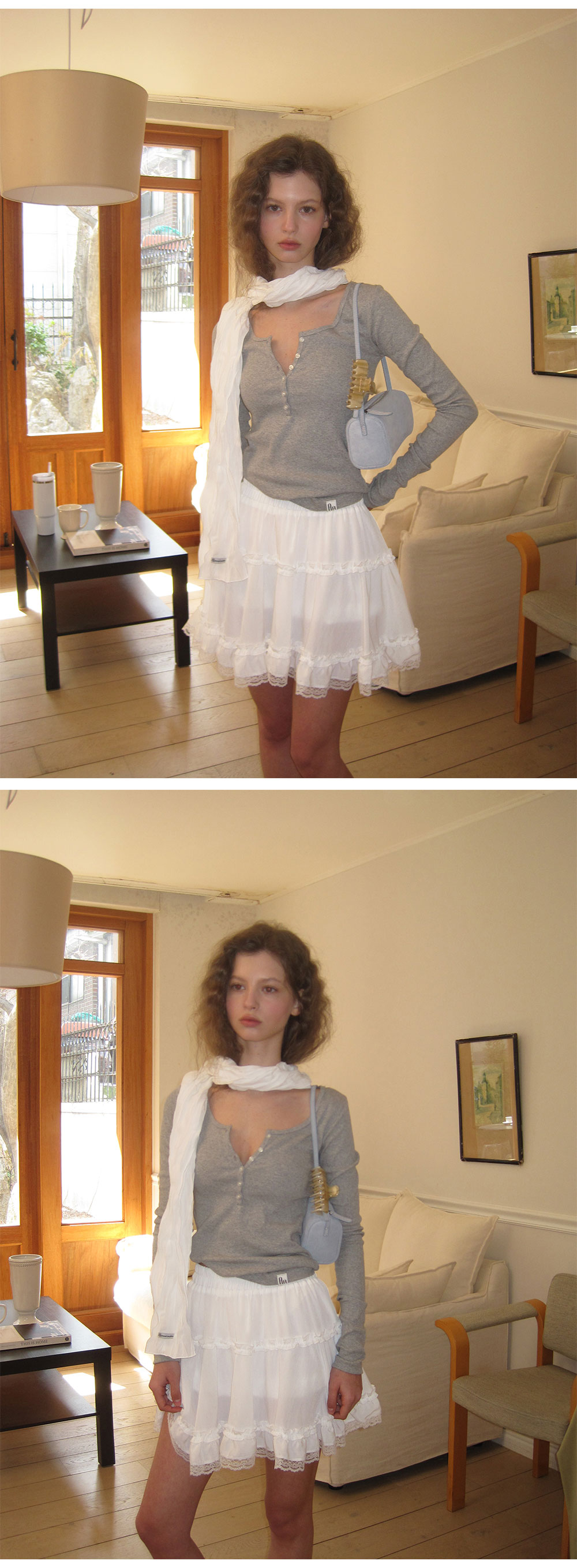 - 섬세한 셔링 디테일이 더해져 자연스럽게 퍼지는 실루엣