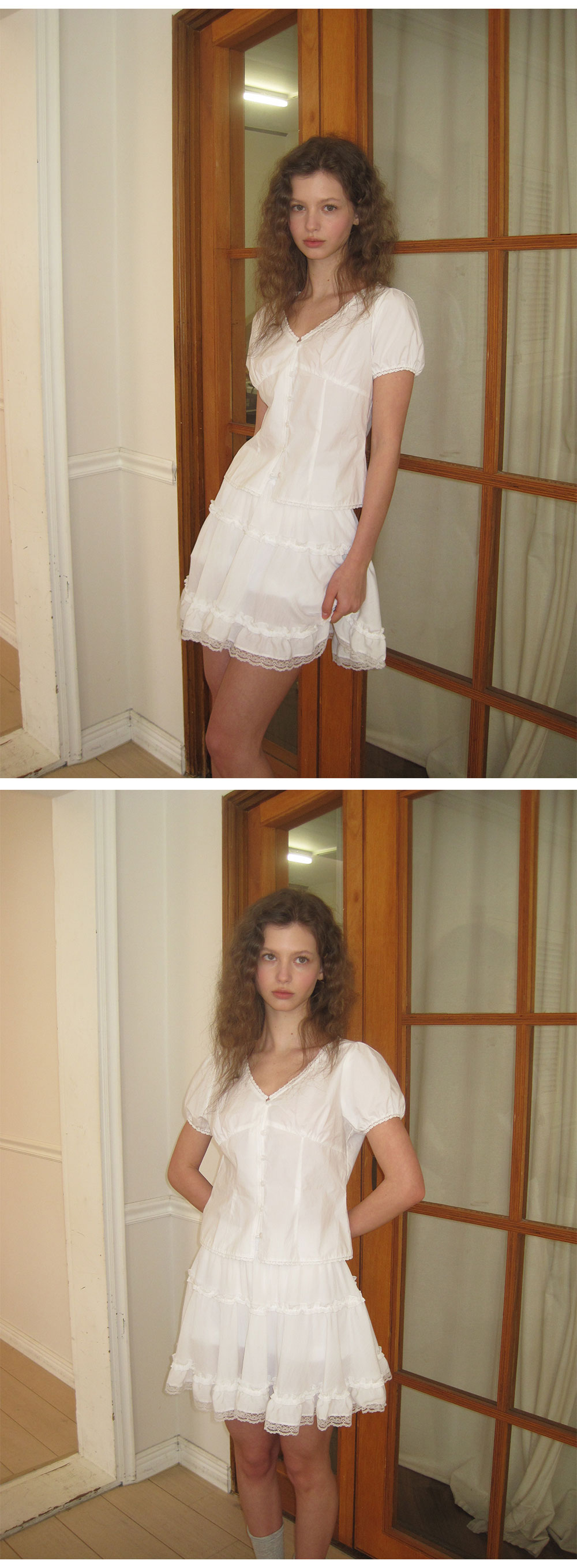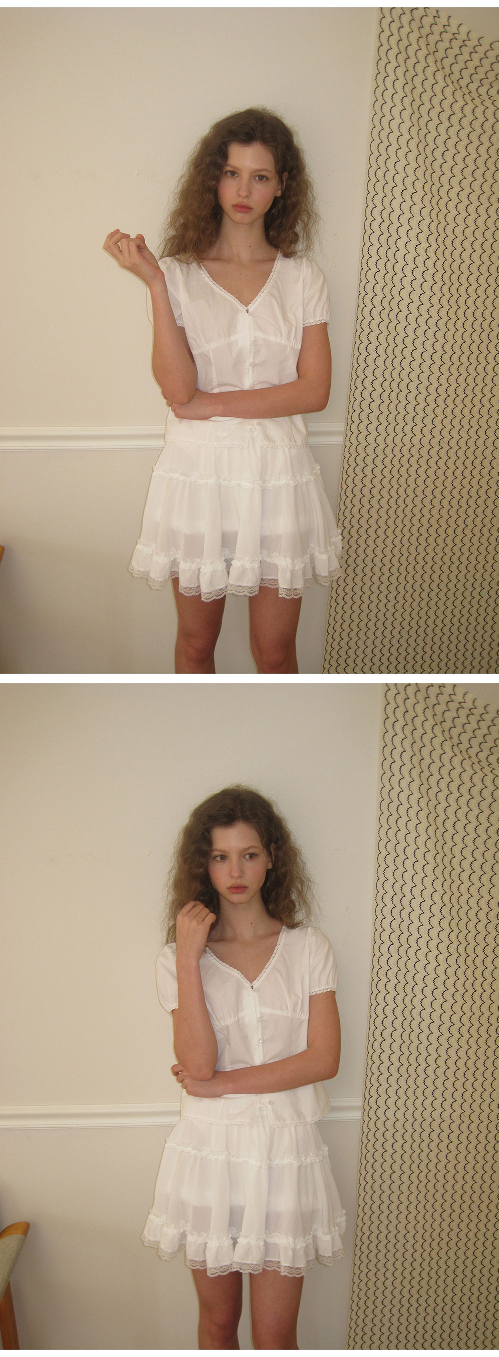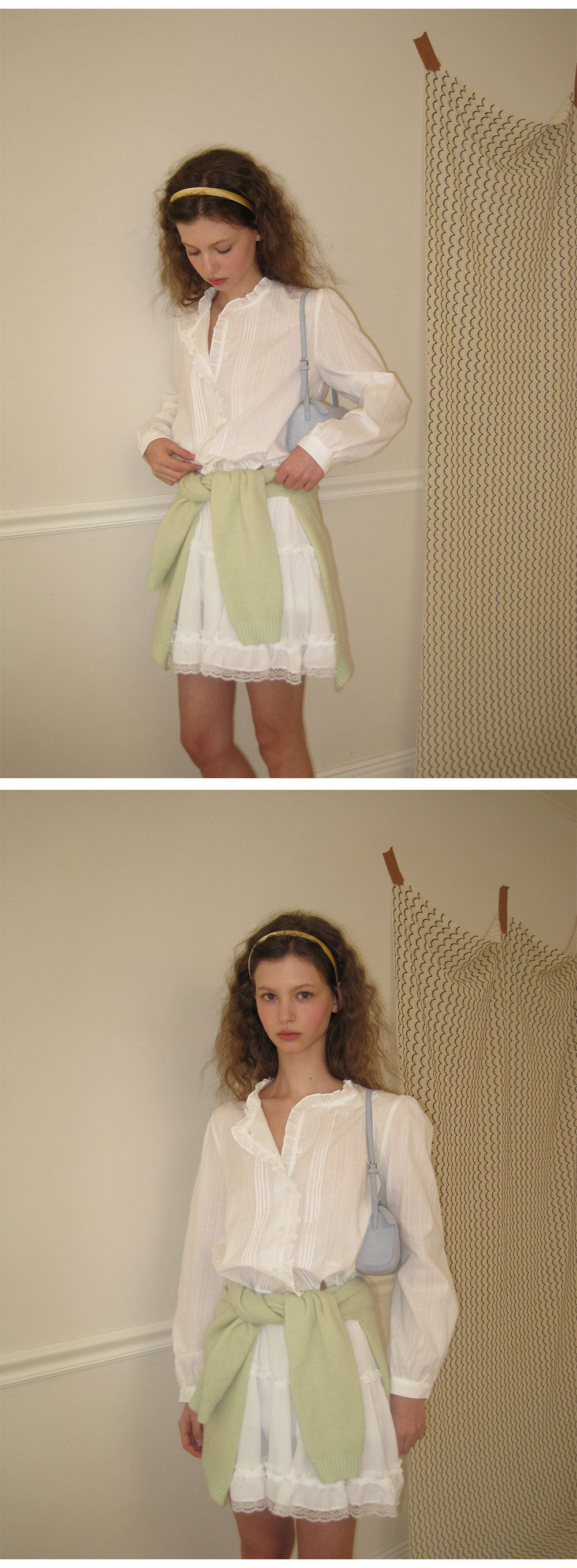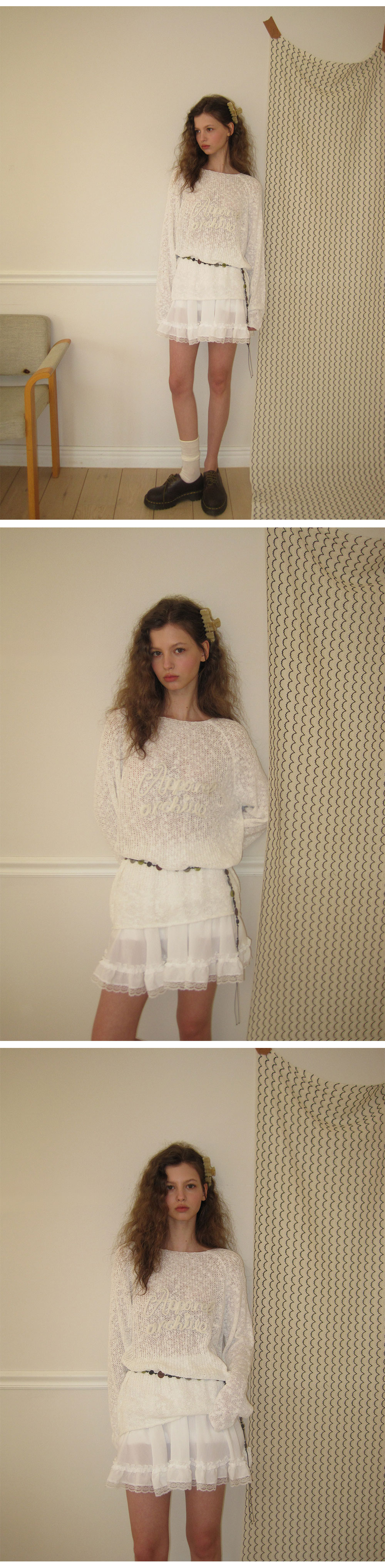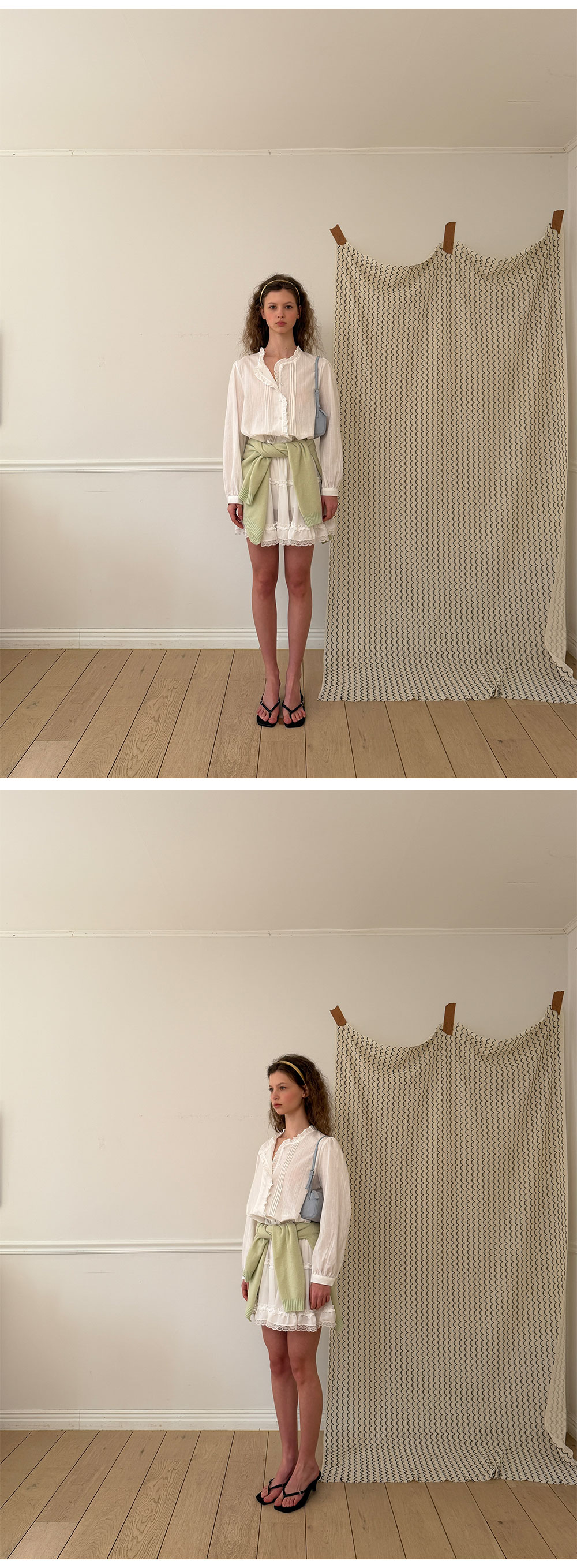 - 가볍게 흐르는 쉬폰 패브릭으로 여리하고 로맨틱한 무드