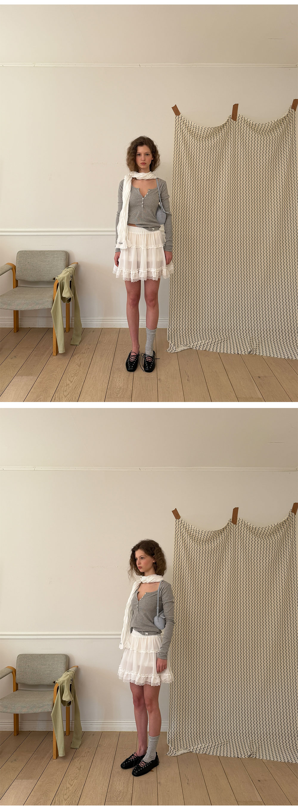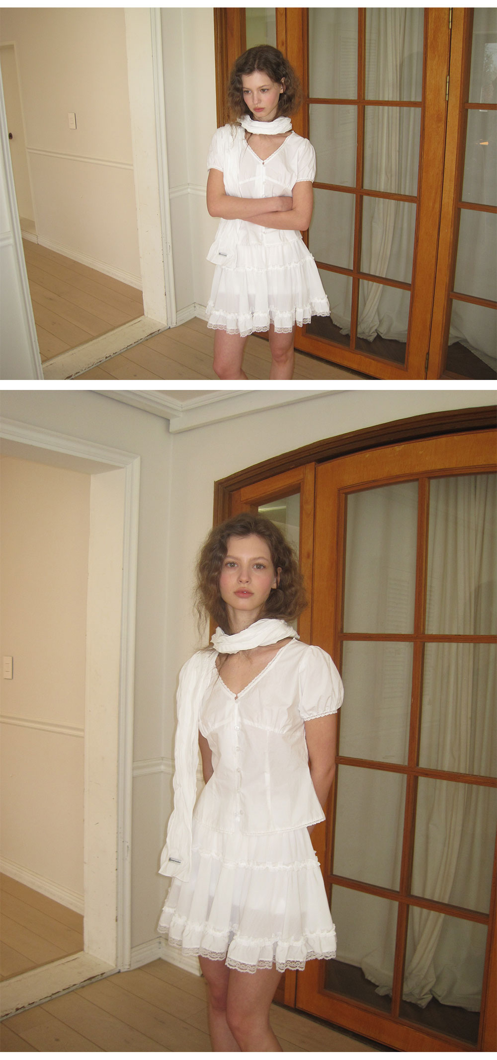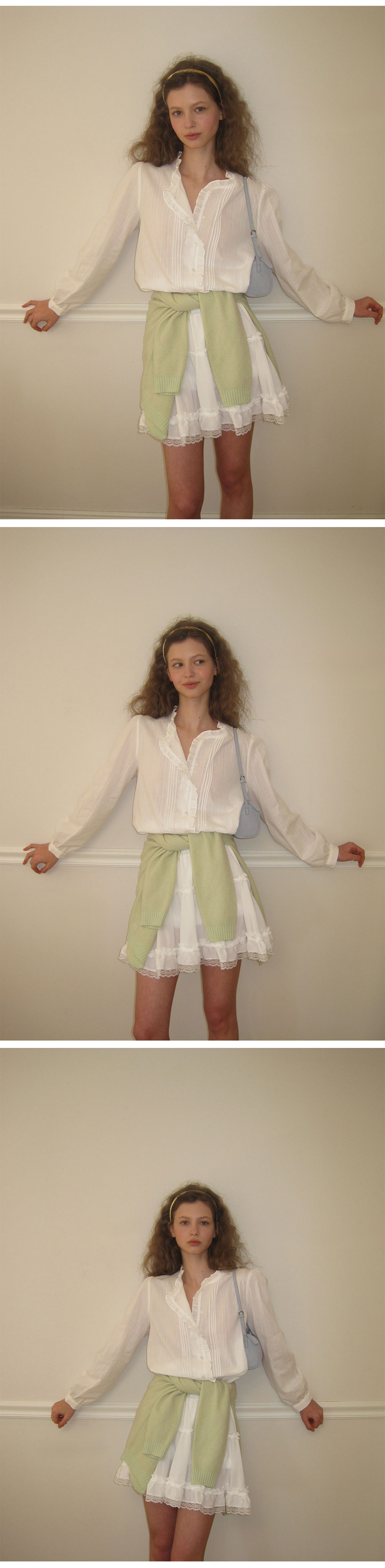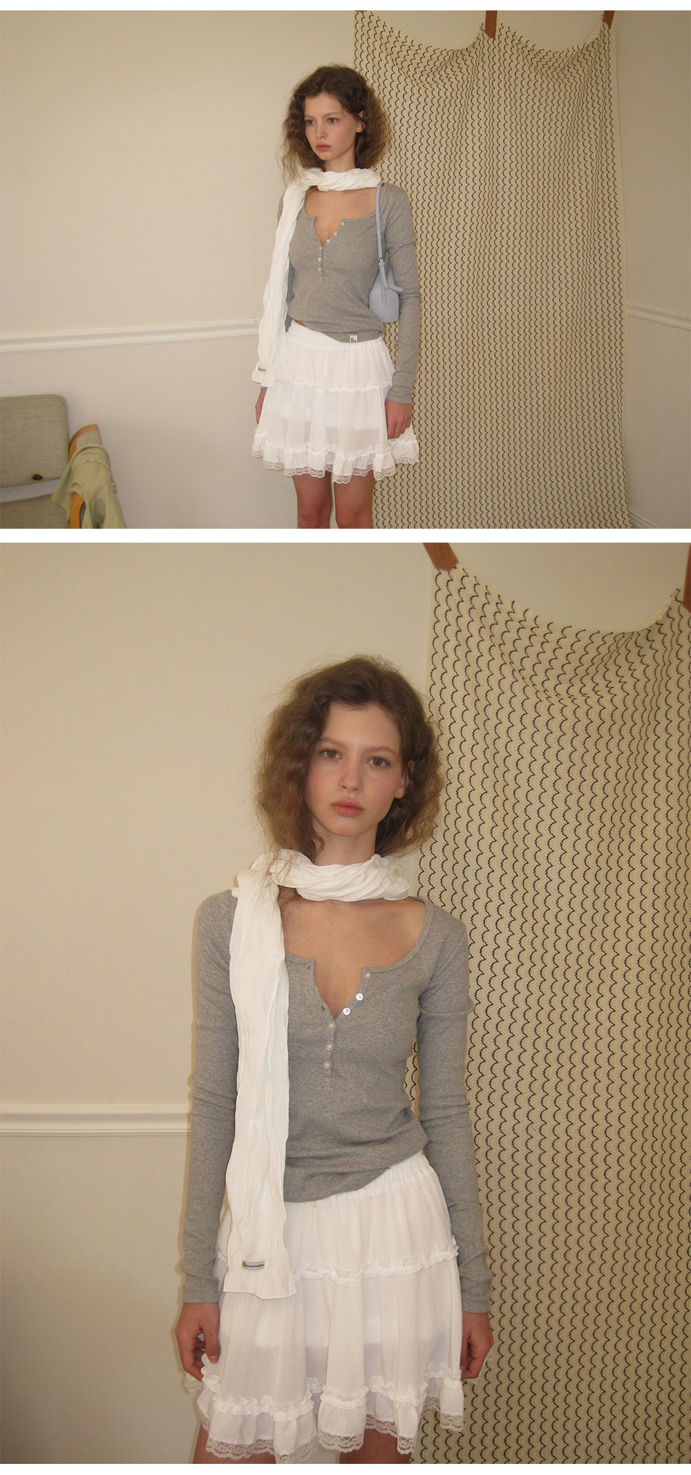 - 가볍게 흐르는 쉬폰 패브릭으로 여리하고 로맨틱한 무드