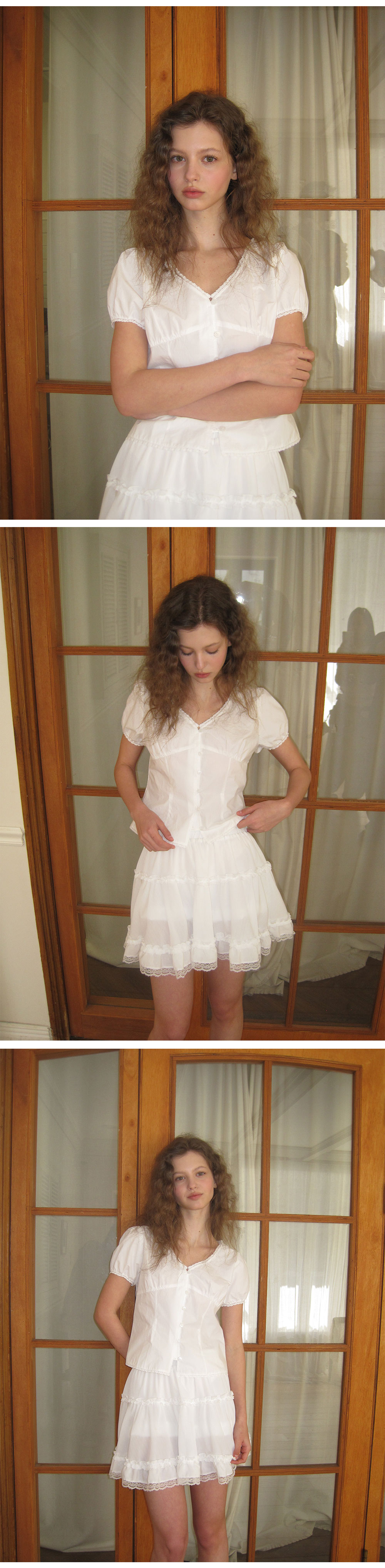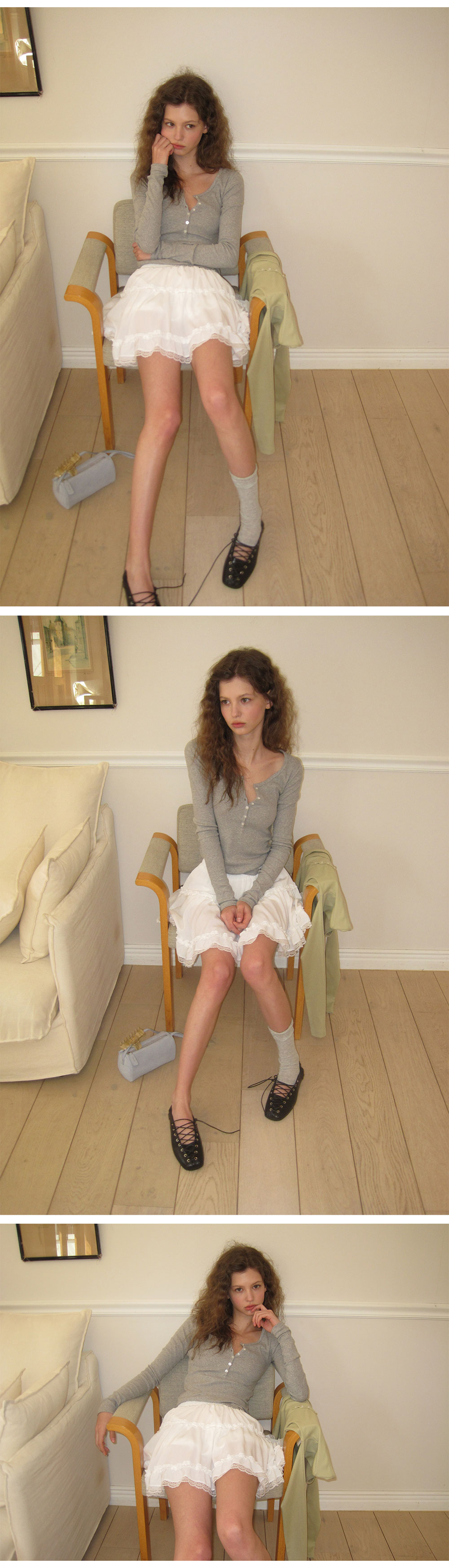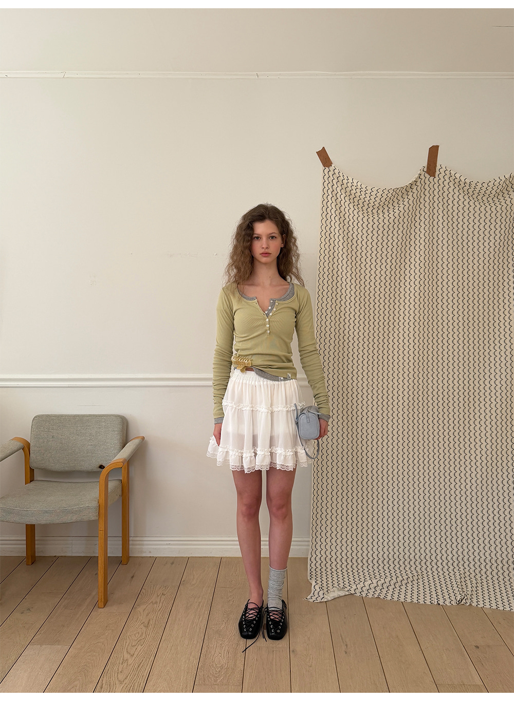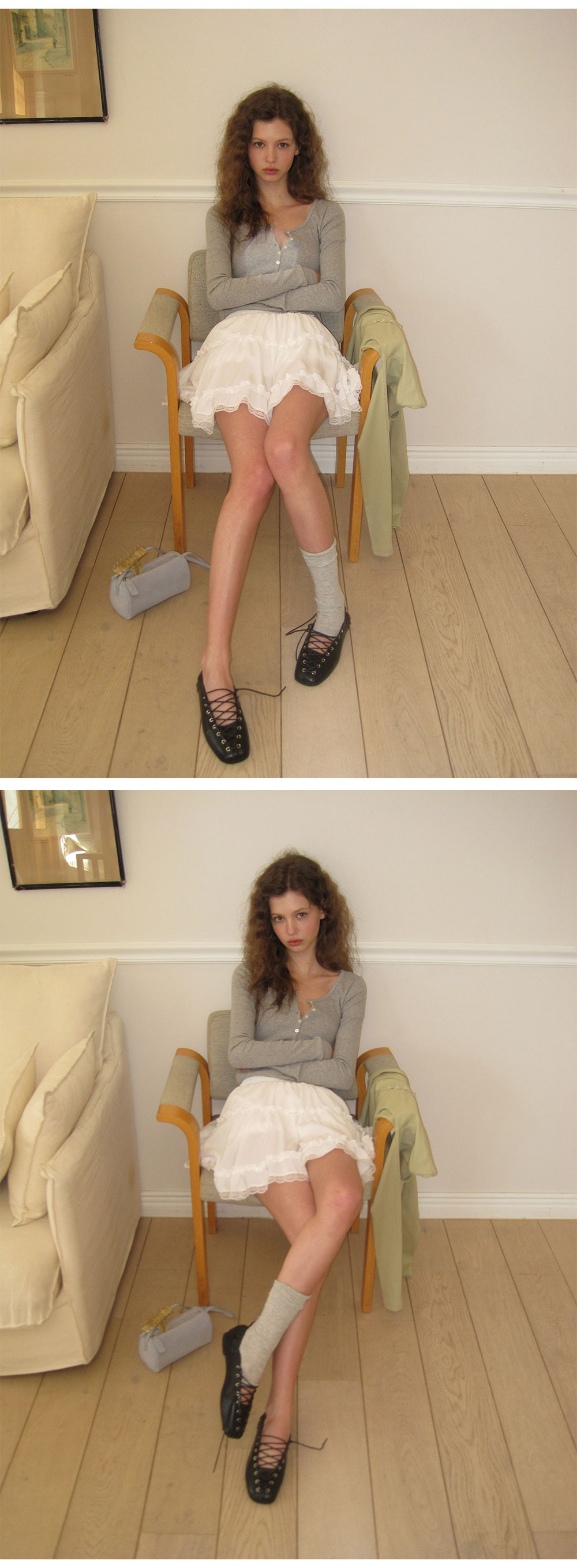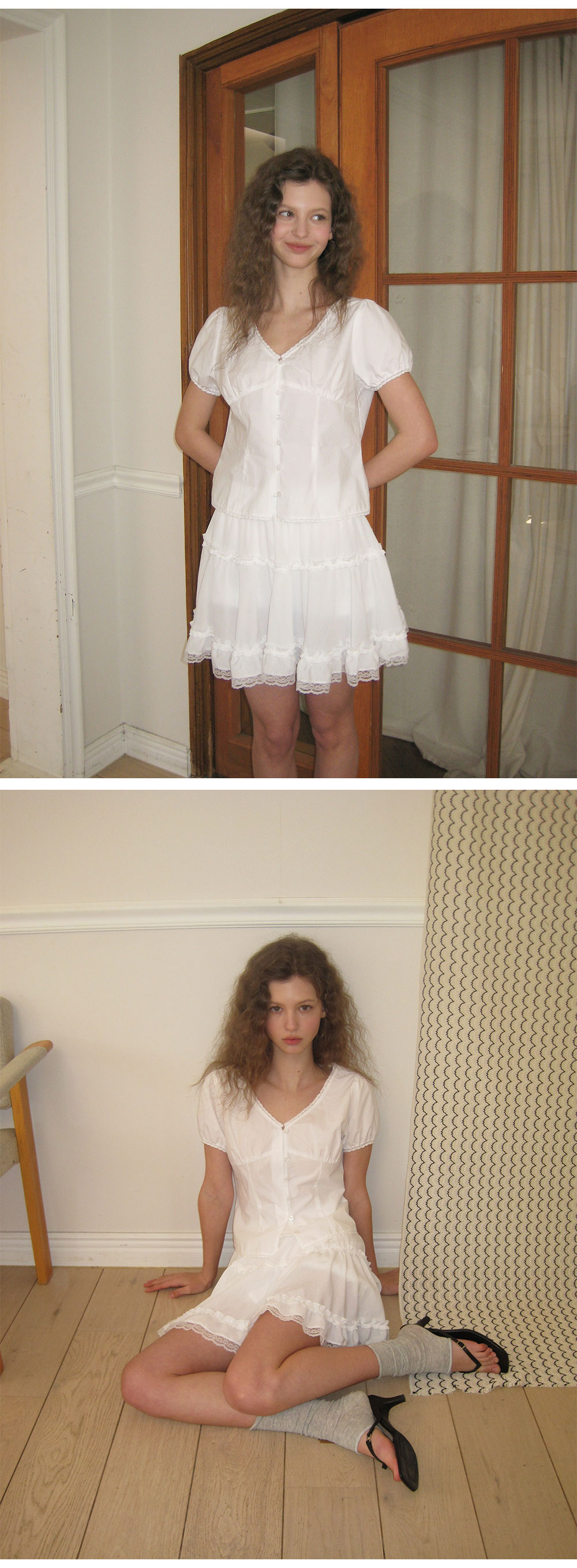 - 가볍게 흐르는 쉬폰 패브릭으로 여리하고 로맨틱한 무드