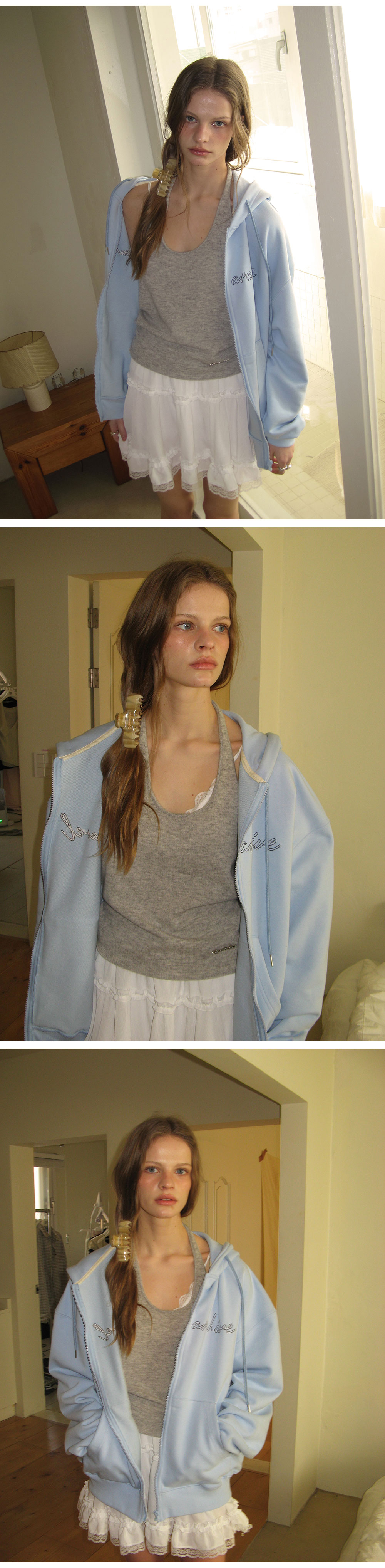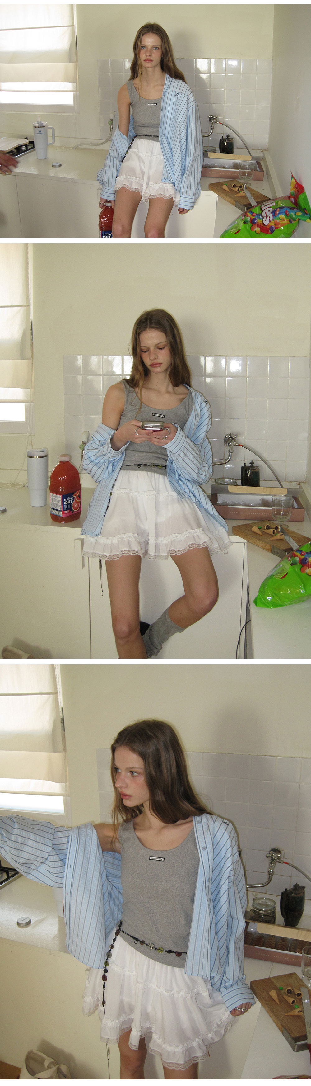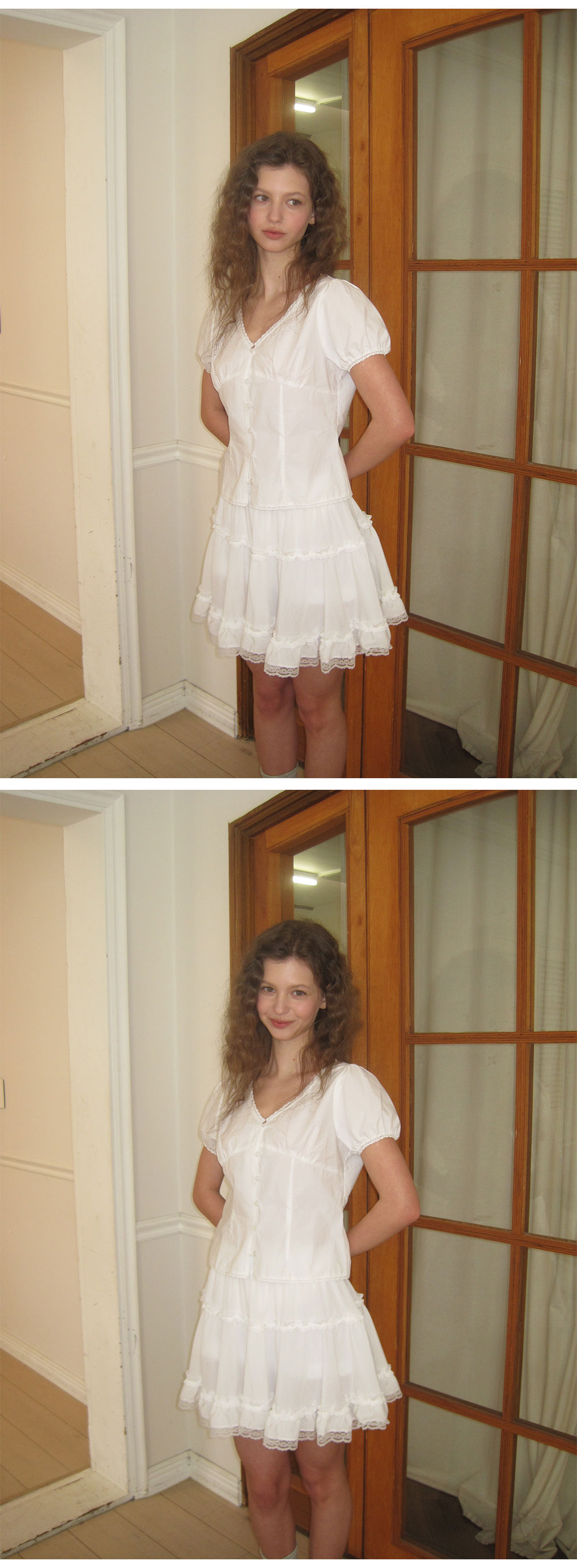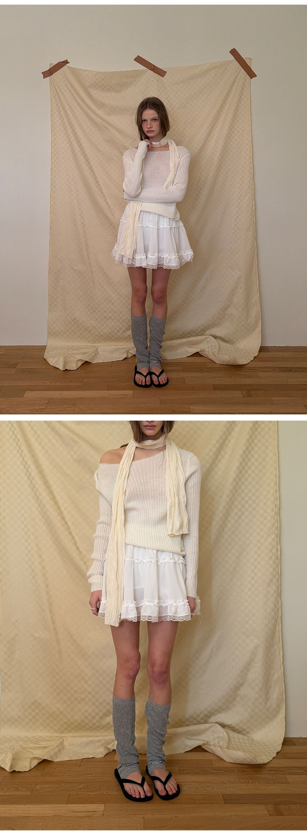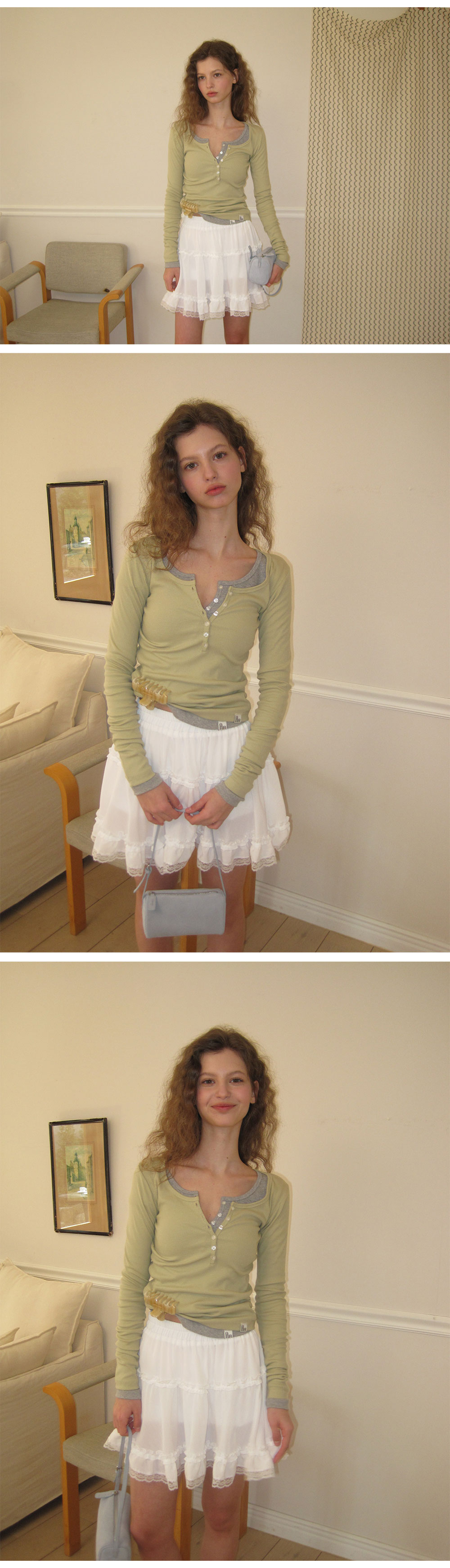 - 가볍게 흐르는 쉬폰 패브릭으로 여리하고 로맨틱한 무드