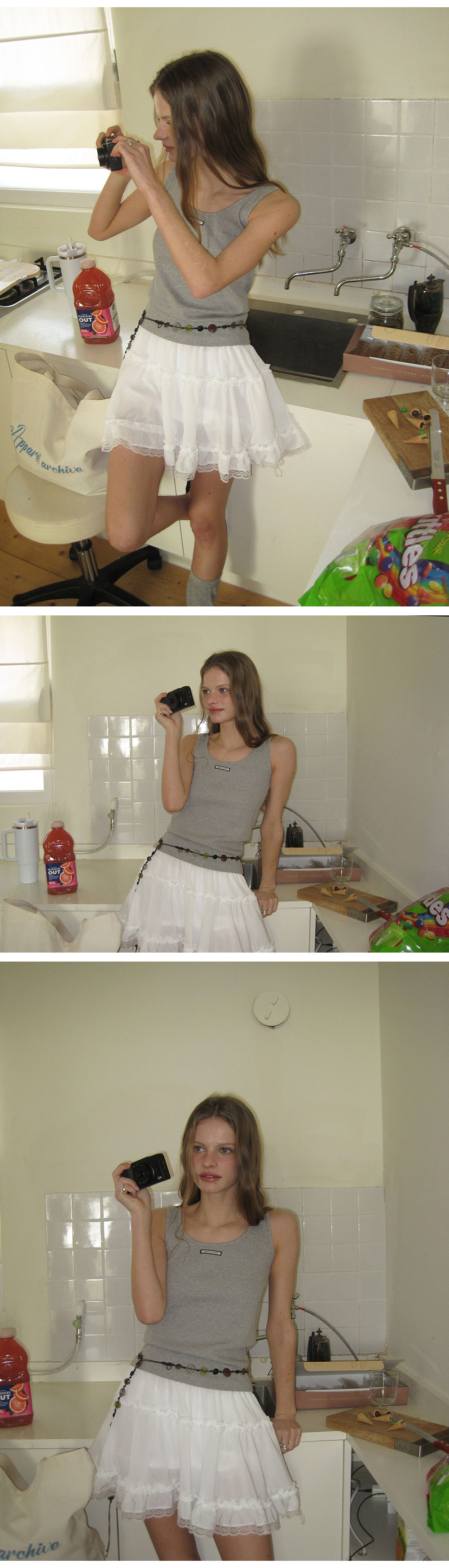 MODEL SIZE : Height : 169cm / Chest 30.5in / Waist : 23.6in / Hips : 35.8in