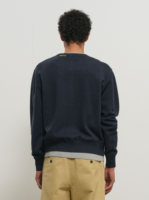 V 넥 니트 스웨터 네이비
