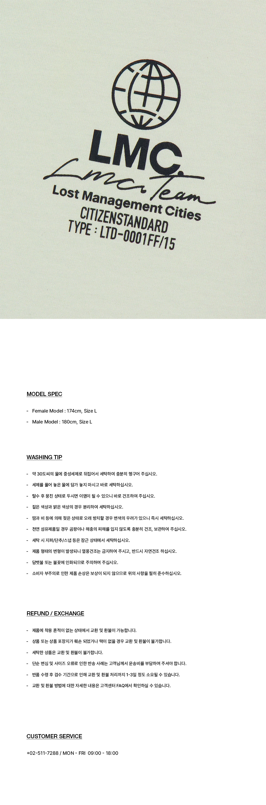 엘엠씨(LMC)는 2015년 론칭하여 ‘Lost Management Cities’를 모티프로 각자의 방식으로 살아가는 세대를 담아내고, 변화하는 환경 속에서 동시대의 문화적 코드를 재해석하며, 다양한 협업과 프로젝트를 통해 스트리트 감성을 확장하는 브랜드입니다.