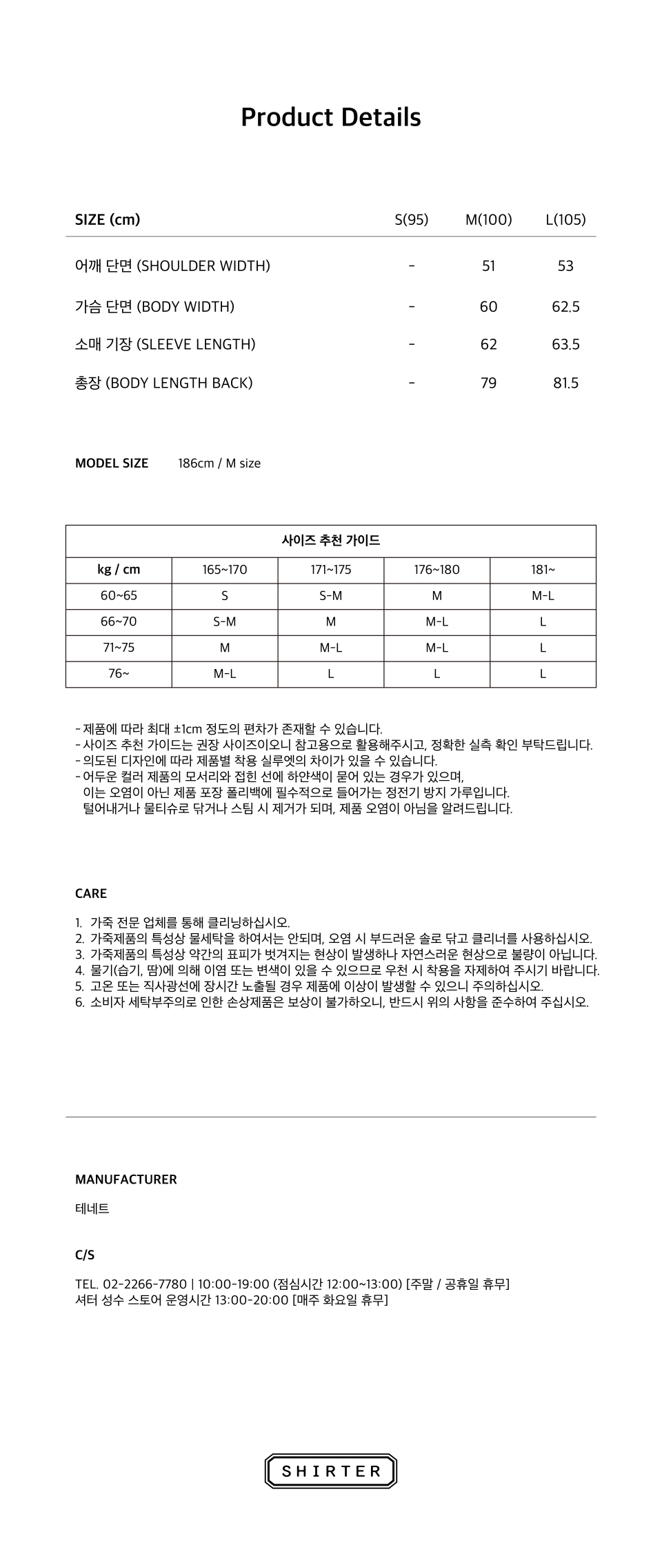 셔터(SHIRTER)는 '셔츠를 입는 사람'이라는 뜻에서 시작했습니다. 우리는 의복의 힘을 믿으며, 셔터를 입고 즐기는 모두가 감정을 공유하고, 그 감정이 행동에서 표현되기를 바라며 제품을 제작합니다.