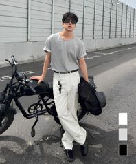 텐셀 코튼 와이드 트라우져 - 워시드 블랙
