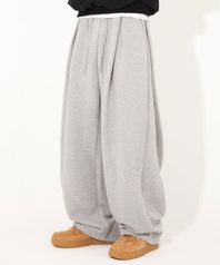 (여름원단추가) 투턱 와이드 롱 스웨트 팬츠 [그레이]