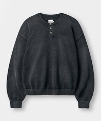 데일리 워셔블 피그먼트 헨리넥 라운드 니트_차콜
