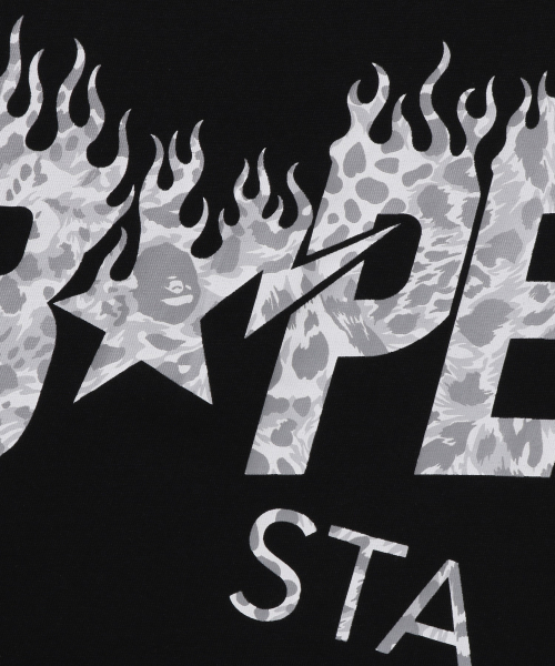 와일드 레오파드 패턴 베이프 스타 로고 릴렉스드 핏 티셔츠(M) BLACK