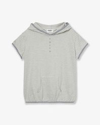 STRIPE HALF SLEEVE HOODIE [GREY]