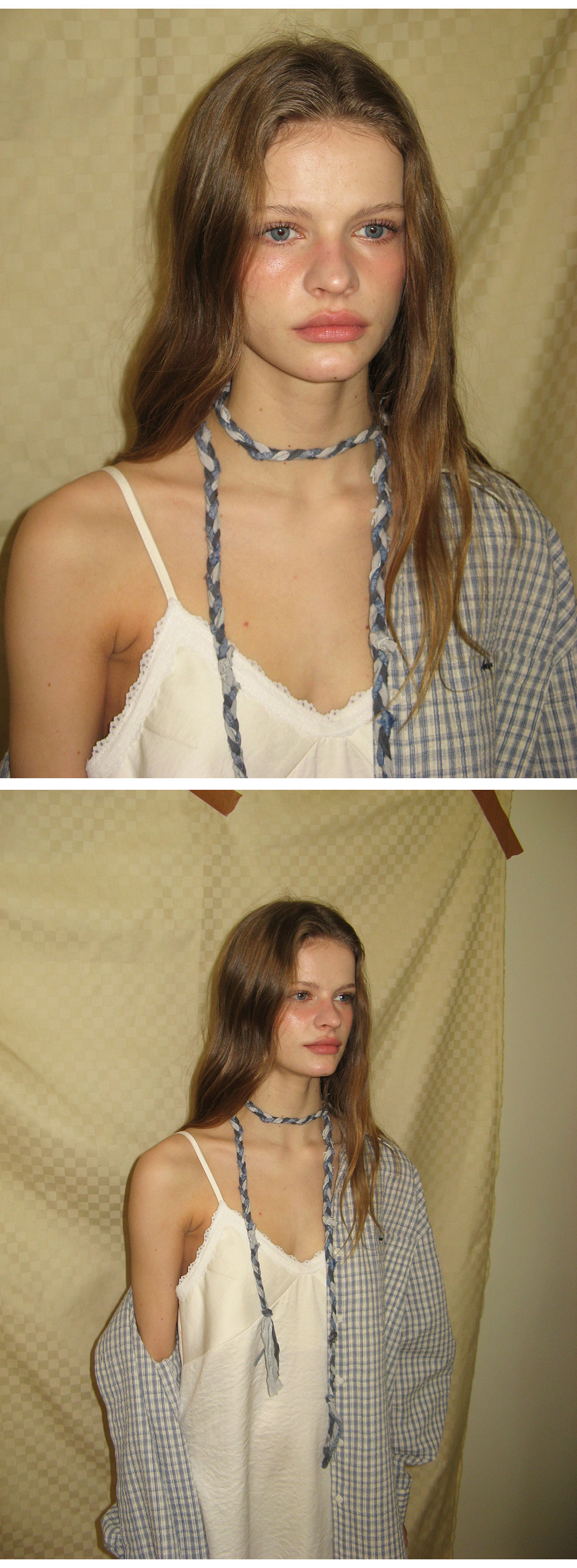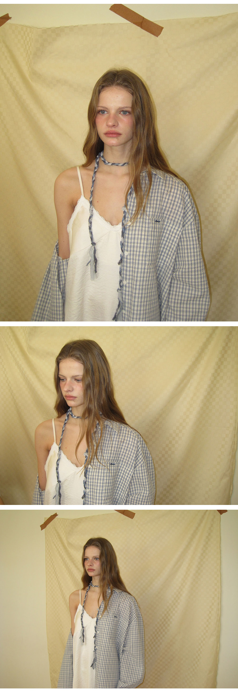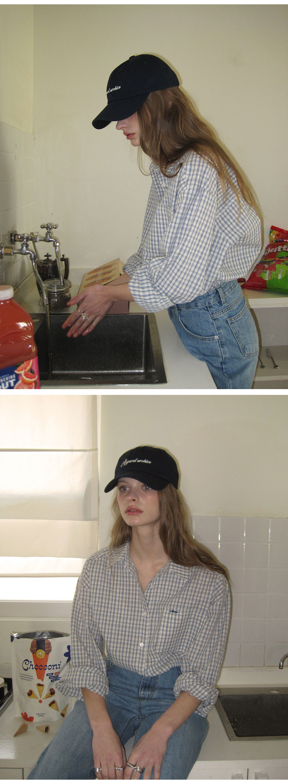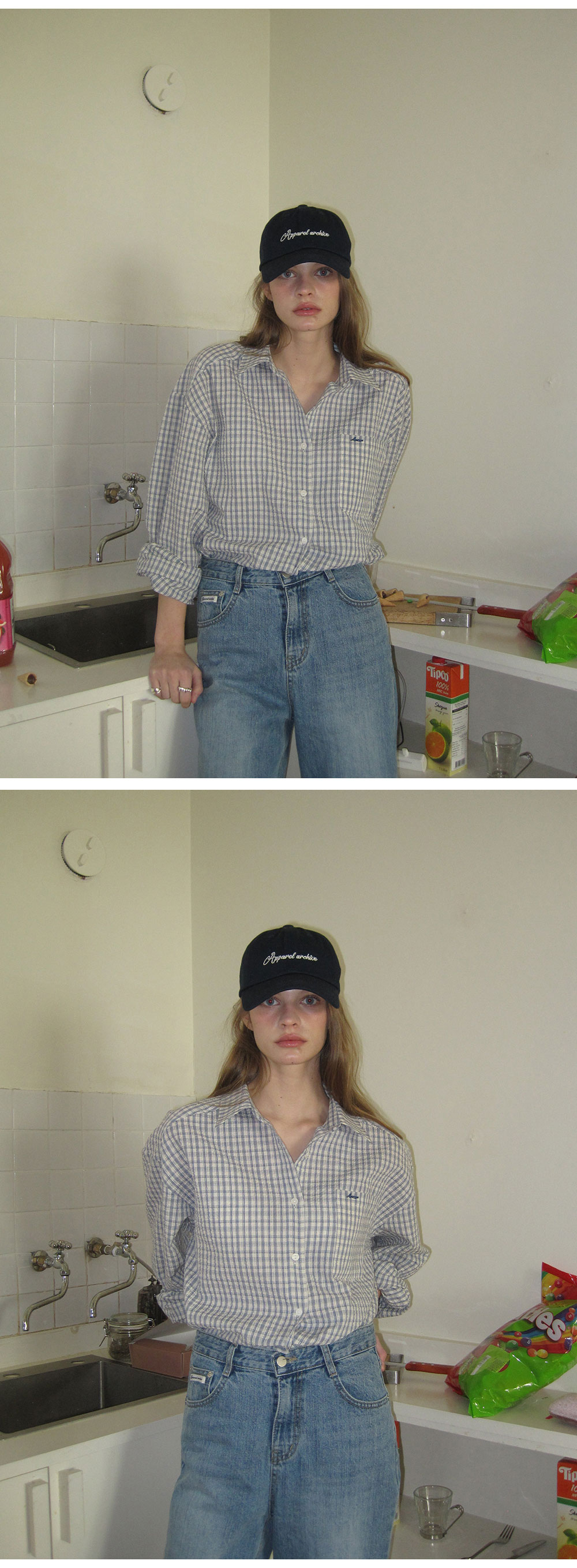 - 빈티지한 감성을 담은 자연스러운 체크 패턴이 포인트
