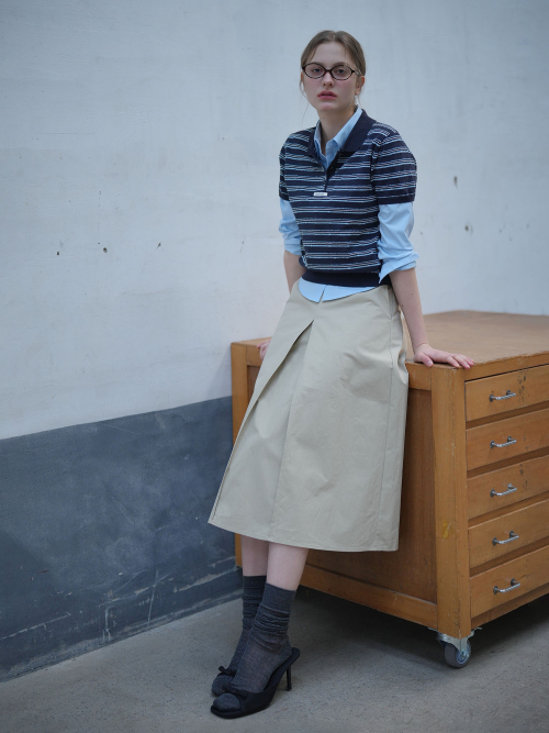 스플릿 에이라인 미디 스커트 [BEIGE] / GF1LSK506