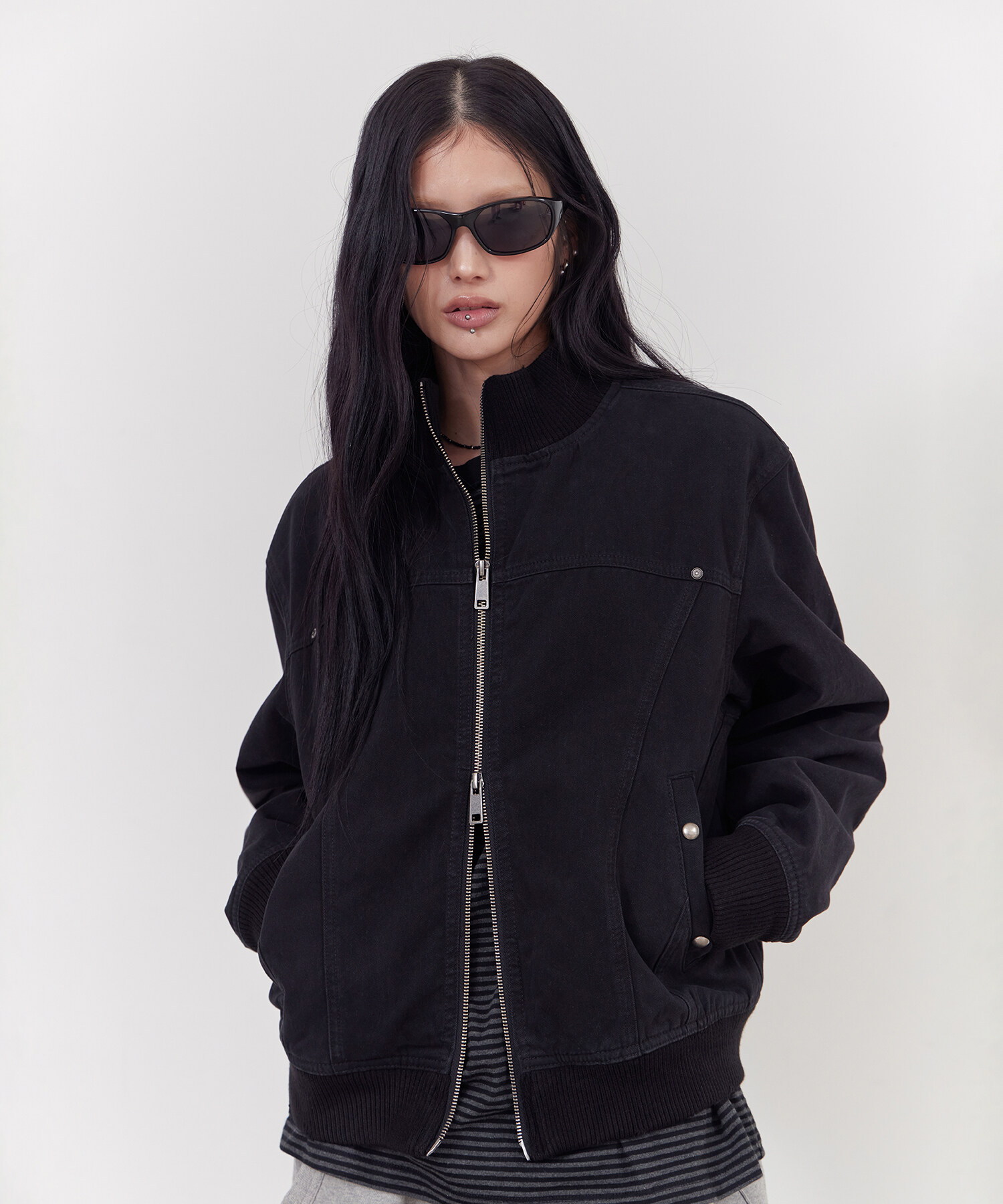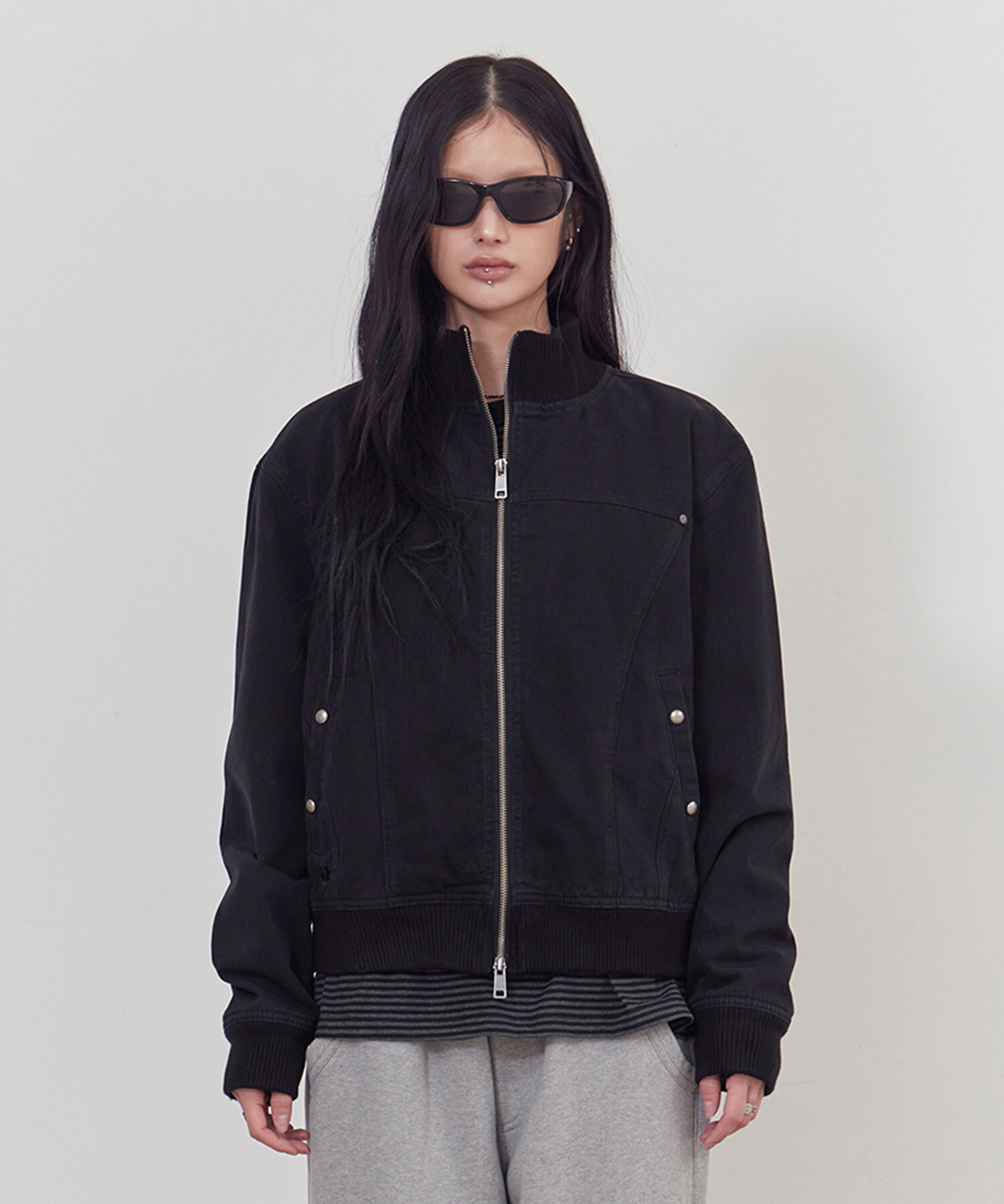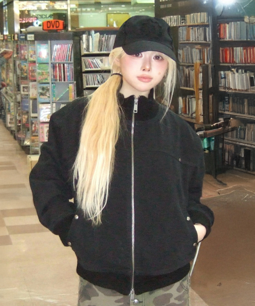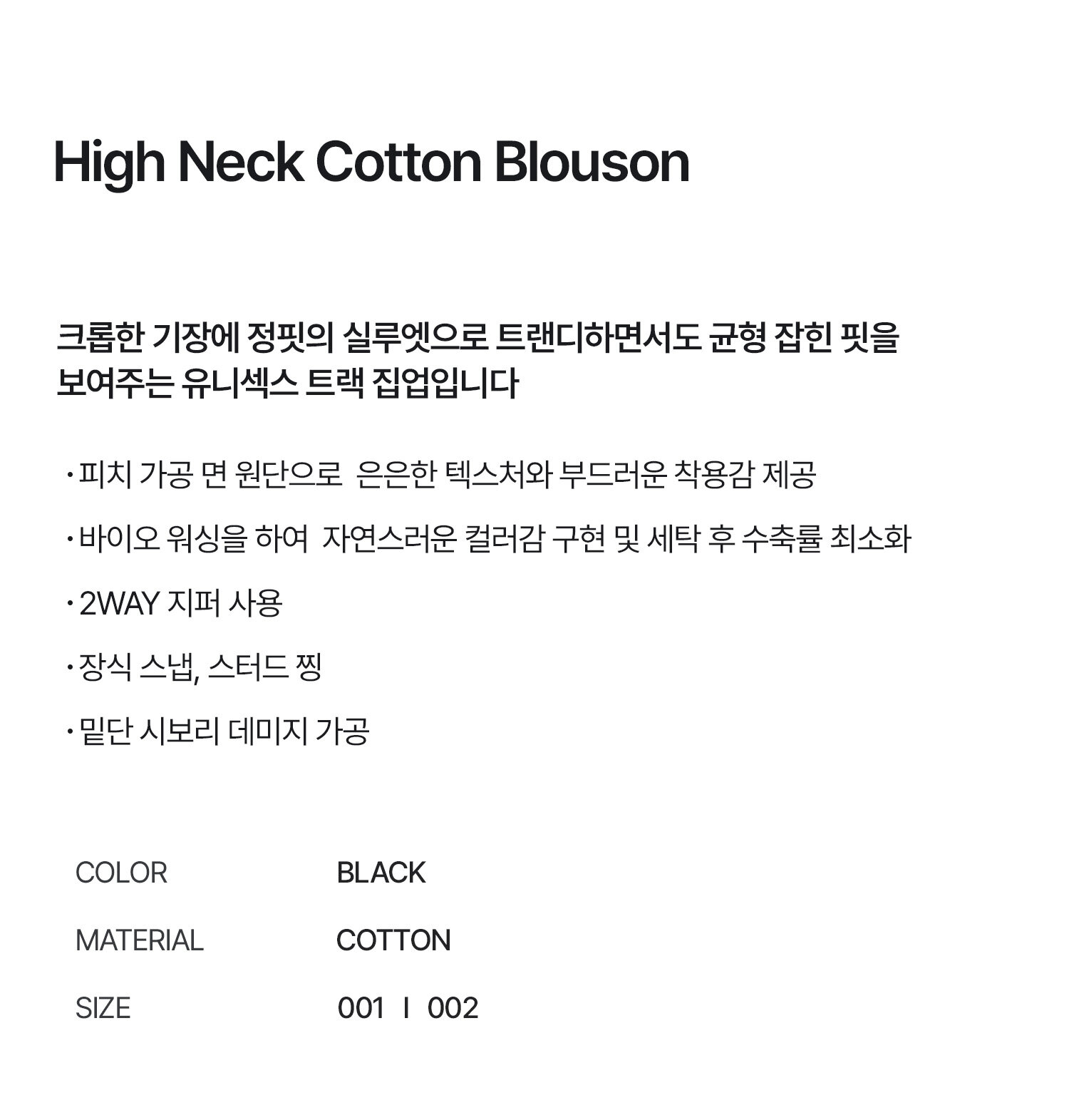 하이넥 코튼 블루종 블랙
