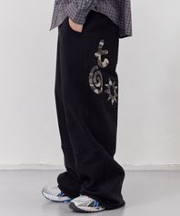 [유정 PICK] 아플리케 스웻 팬츠 블랙