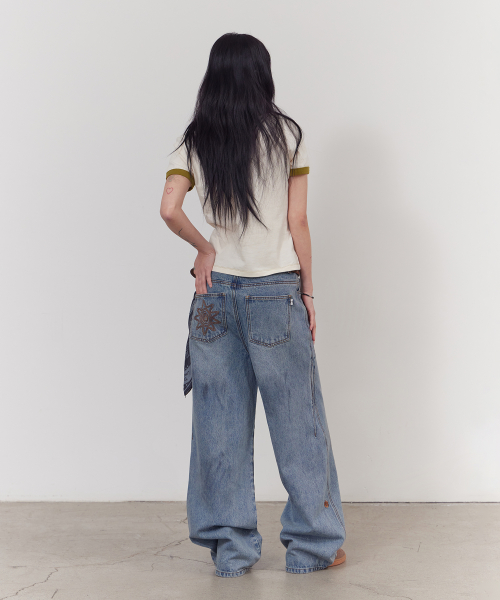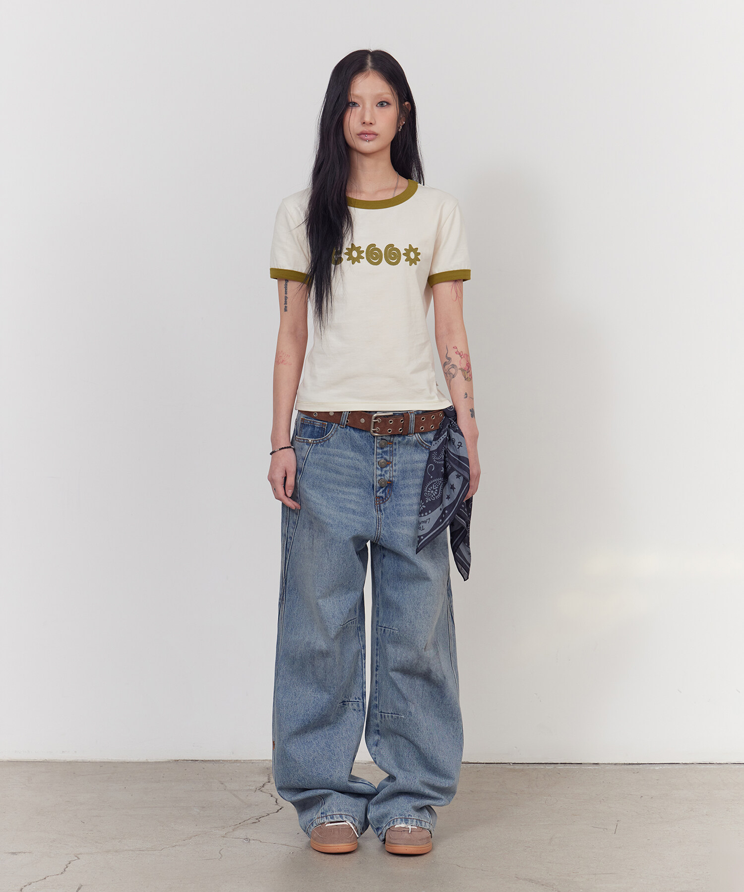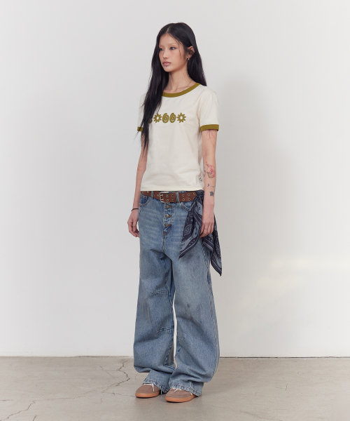 [유정 PICK] 피그먼트 아플리케 롱슬리브 워시드 그린