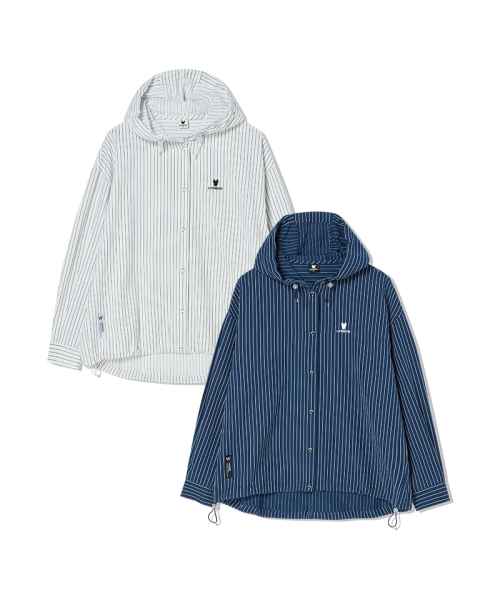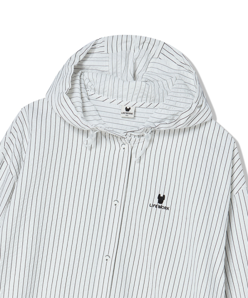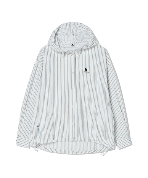 여성) 스트라이프 시어서커 후드 셔츠