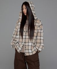 여성) 빈티지 후드 체크 셔츠