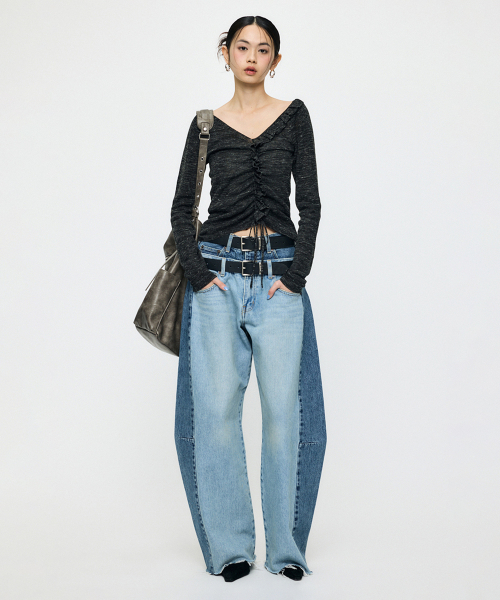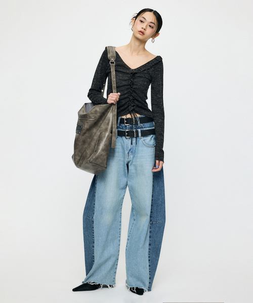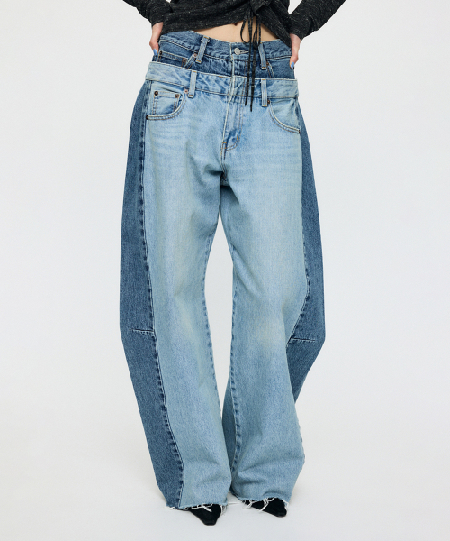 [MOUSSY] DOUBLE WAIST BAGGY LIGHT BLUE