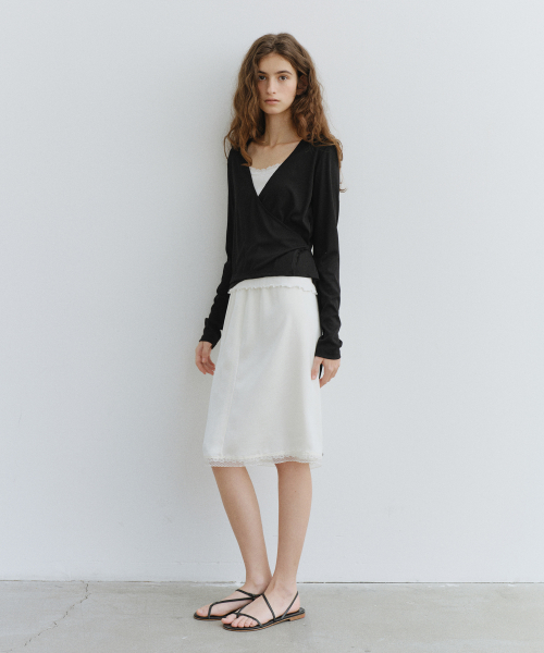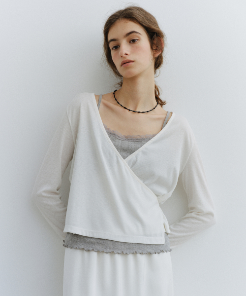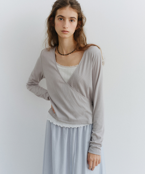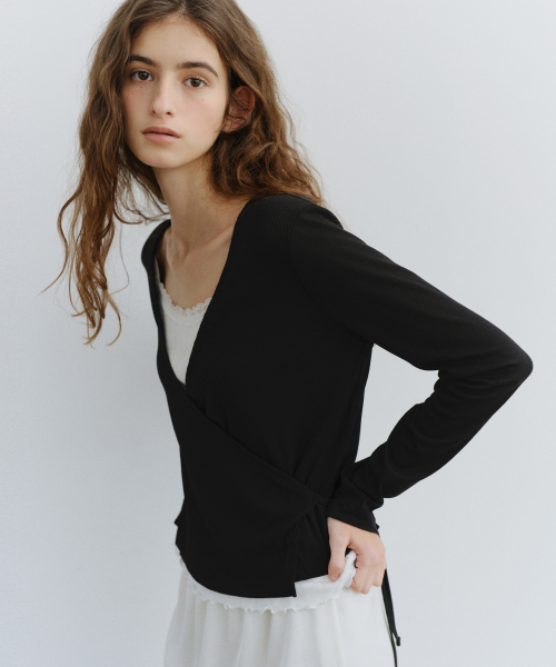 - 바디를 감싸는 랩 디자인으로 구성되어 자연스럽게 허리 라인이 강조되며, 과하지 않은 여성스러움과 세련된 분위기를 동시에 연출합니다.