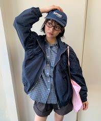 RUCHED HOODED LOOSE FIT WIND JUMPER NAVY