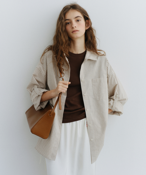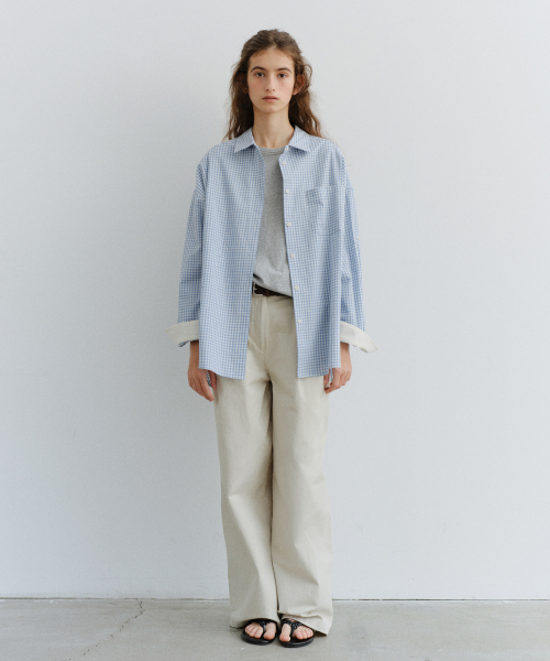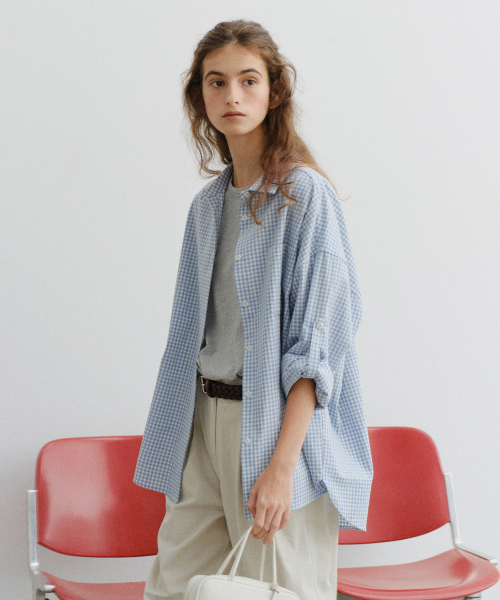 - 면 100% 원단의 잔 체크 패턴으로 제작되어, 가볍고 내추럴한 착용감이 돋보이는 셔츠입니다.