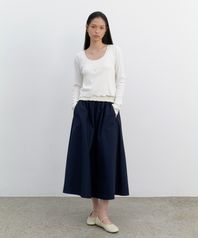 - 전체적으로 여유 있는 실루엣으로 단독 착용 시에는 편안한 무드를, 이너와 레이어드했을 때에는 깔끔하게 떨어지는 바디 라인을 유지합니다.