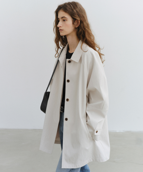 - 소매에는 비죠 디테일을 더해 착용자의 취향에 따라 핏 조절이 가능하도록 구성해, 클래식한 트렌치 요소를 절제된 방식으로 담아냈습니다.