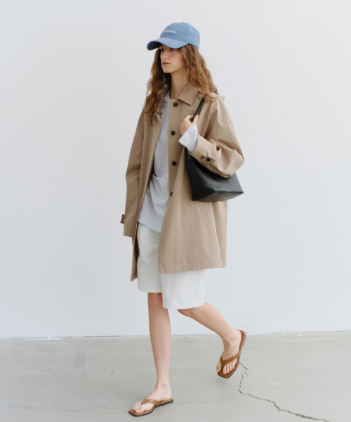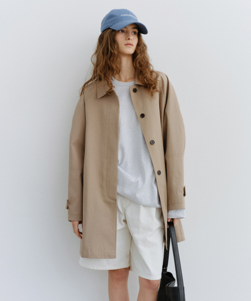 - 코튼의 내추럴한 터치감에 나일론의 탄탄한 내구성을 더한 코튼 혼방 소재로 제작되어, 가볍지만 흐트러짐 없이 정돈된 텍스처가 인상적인 트렌치입니다.