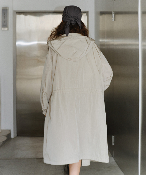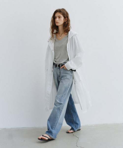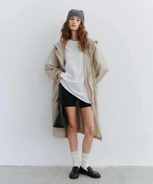 - 후드와 스냅 버튼 클로징 구조는 날씨와 상황에 따라 실용적으로 활용할 수 있도록 설계되었으며, 여유 있는 실루엣과 안정감 있는 기장감으로 데일리 룩은 물론 여행이나 가벼운 아웃도어 활동까지 자연스럽게 어우러집니다.